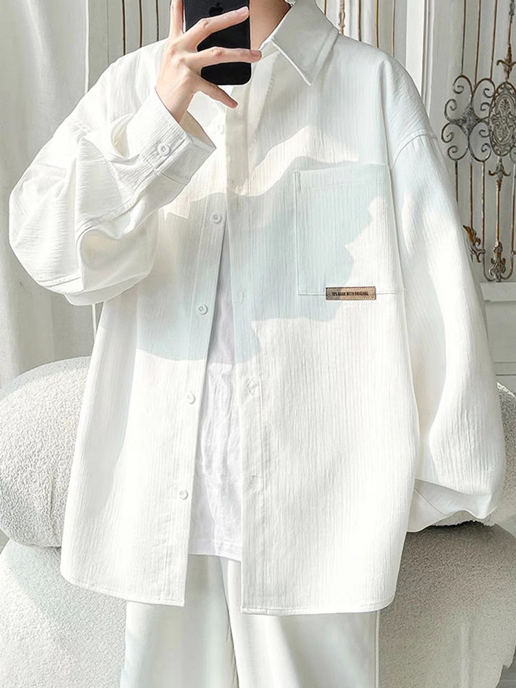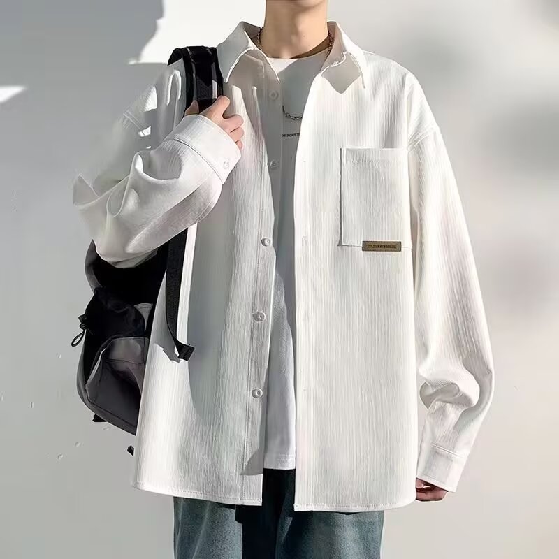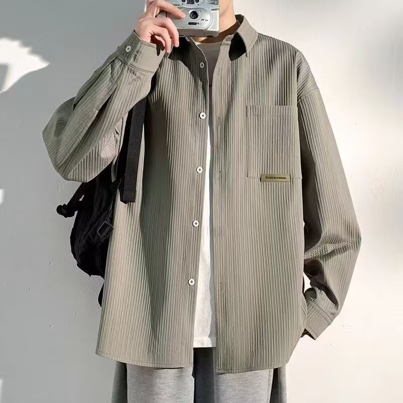2024 편지 긴팔 셔츠 일본 스타일 홍콩 스타일 느슨한 셔츠 소년 여름 유행 올 매치 캐주얼 자켓