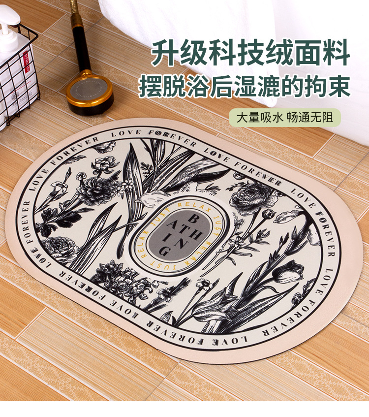 미국 스타일 엔트리 럭셔리 타원형 Diatom 진흙 매트 욕실 흡수성 쿠션 두꺼운 욕실 도어 매트 고무 카펫 매트