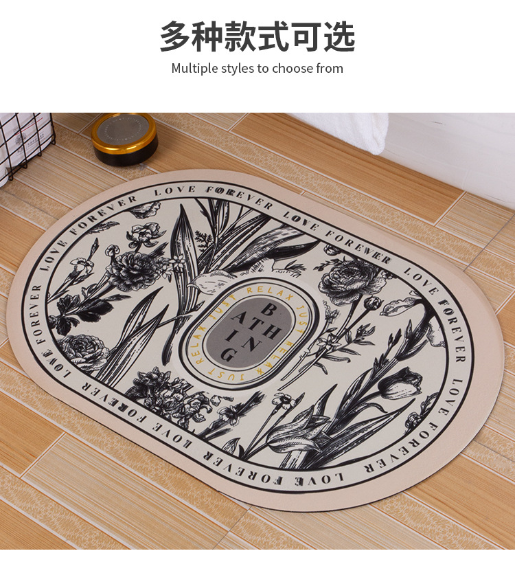 미국 스타일 엔트리 럭셔리 타원형 Diatom 진흙 매트 욕실 흡수성 쿠션 두꺼운 욕실 도어 매트 고무 카펫 매트스토어 가기