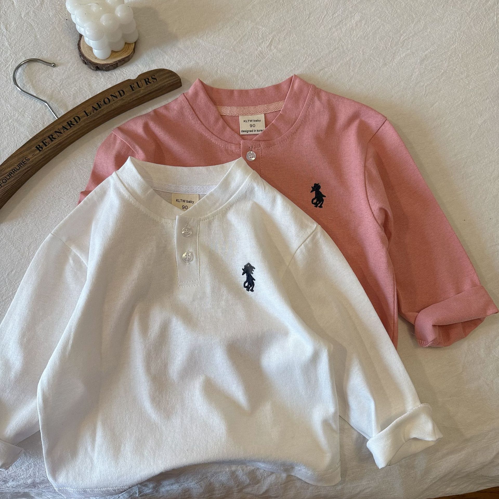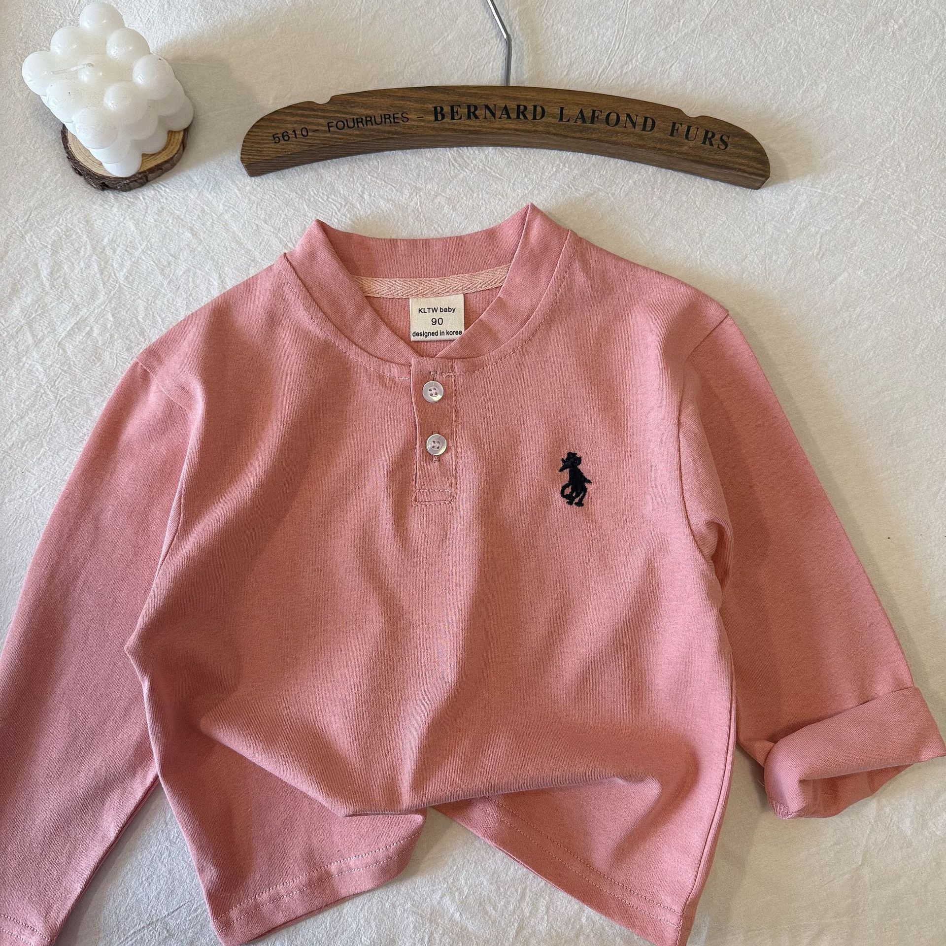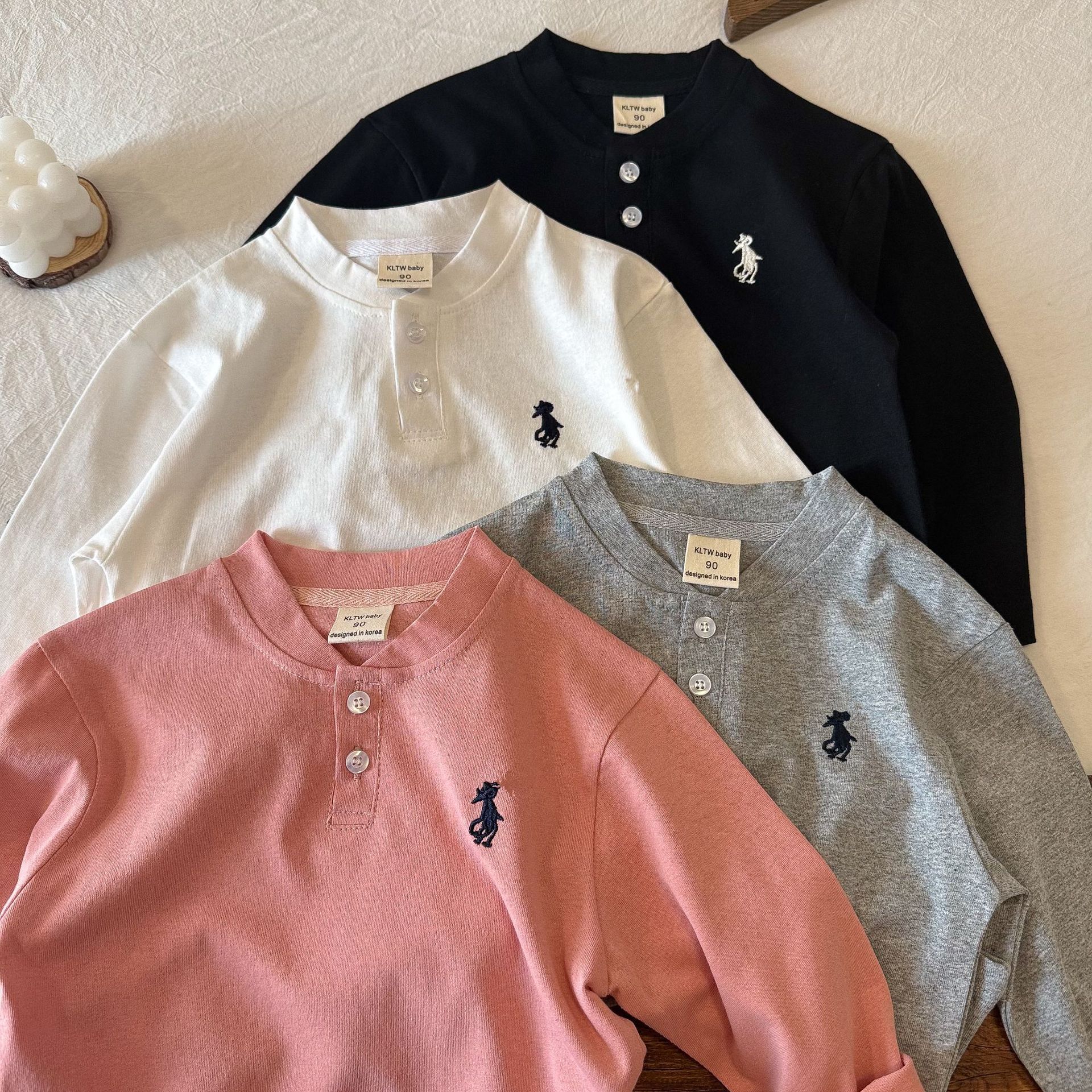 어린이 단색 티셔츠 긴팔 남자 봄 2025 여자 한국 최고 아기 트렌디베이스 셔츠 어린이 크루 넥 탑
