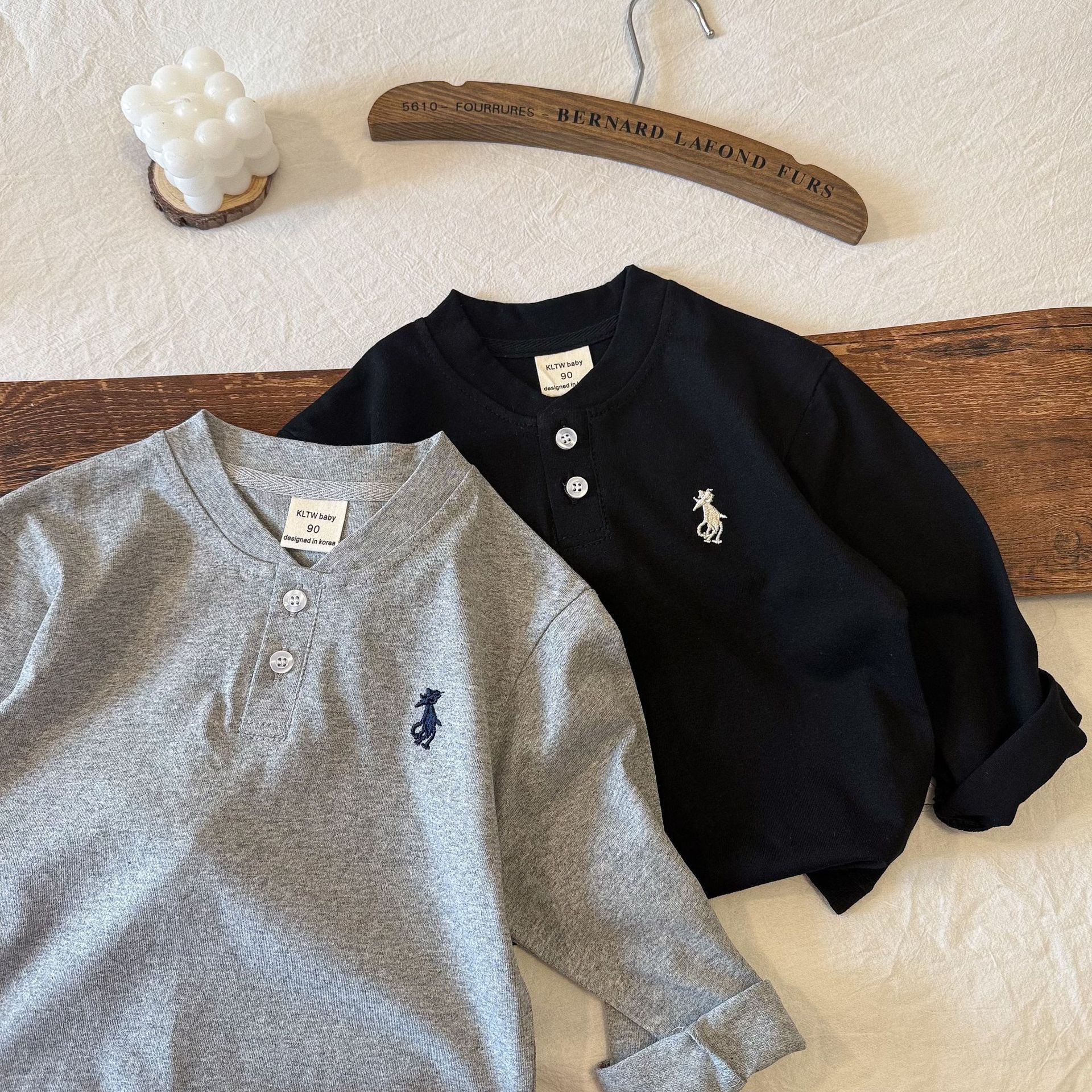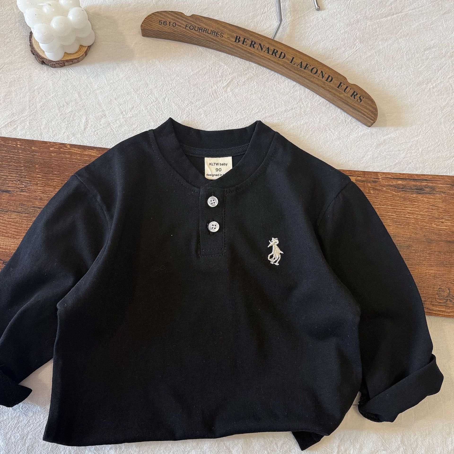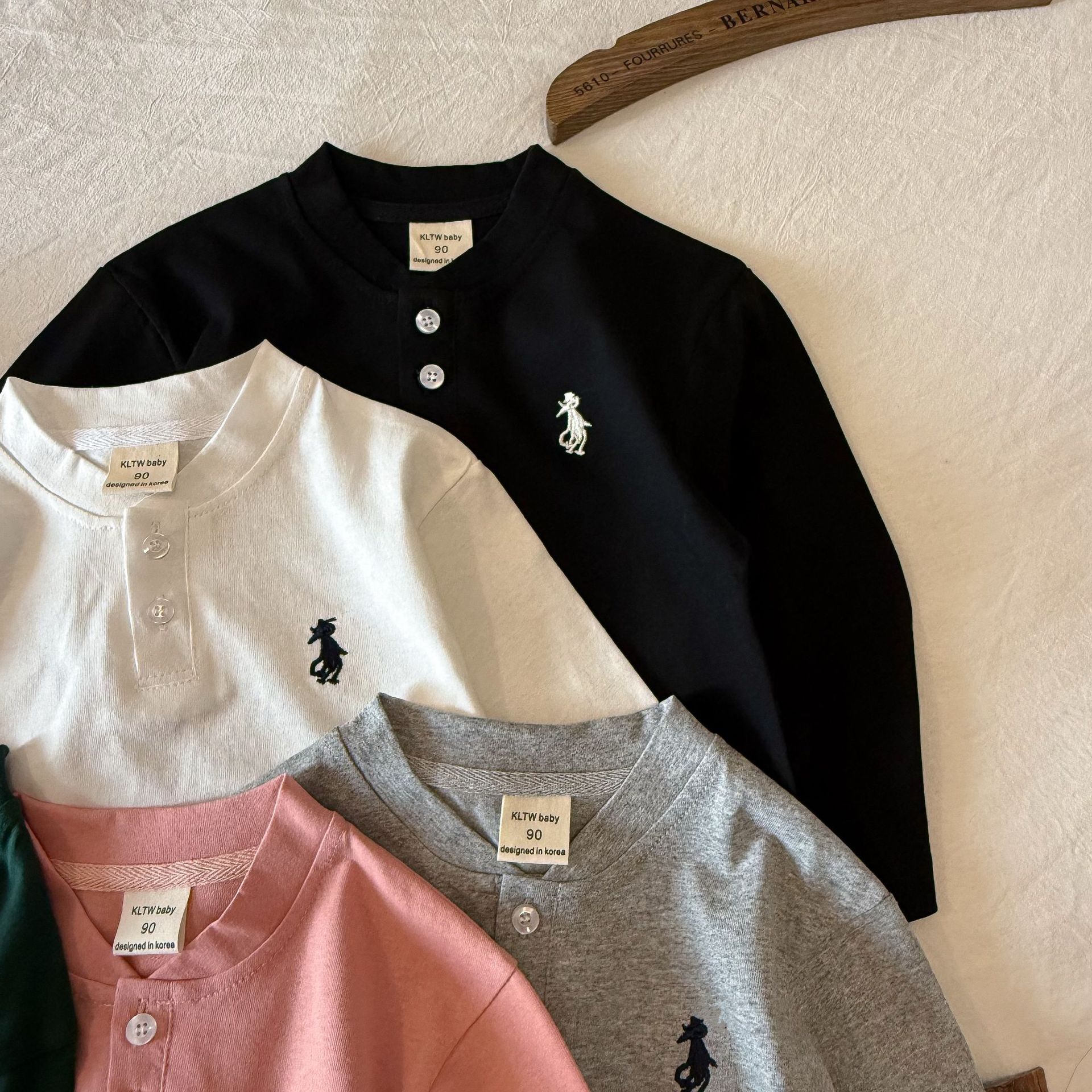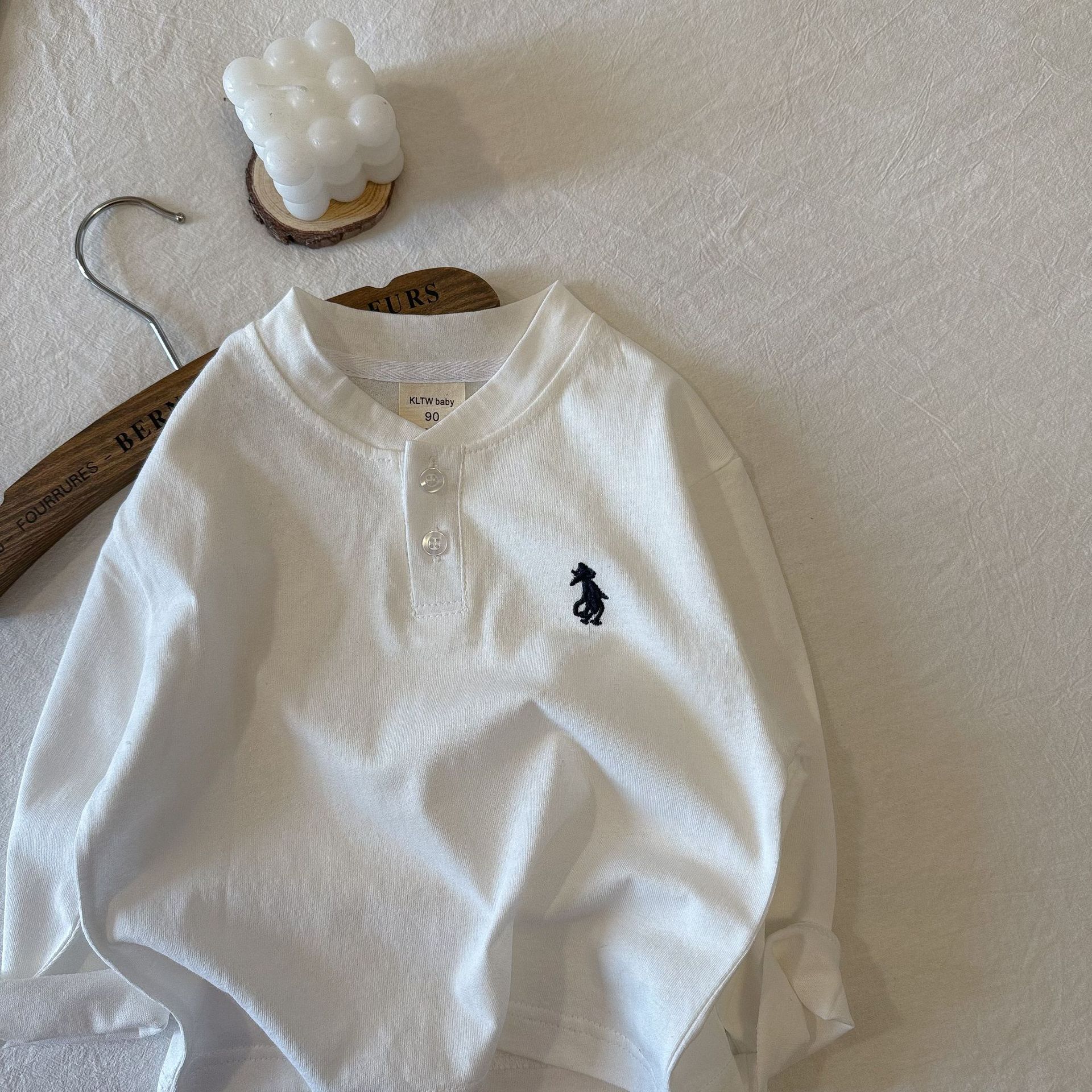 어린이 단색 티셔츠 긴팔 남자 봄 2025 여자 한국 최고 아기 트렌디베이스 셔츠 어린이 크루 넥 탑