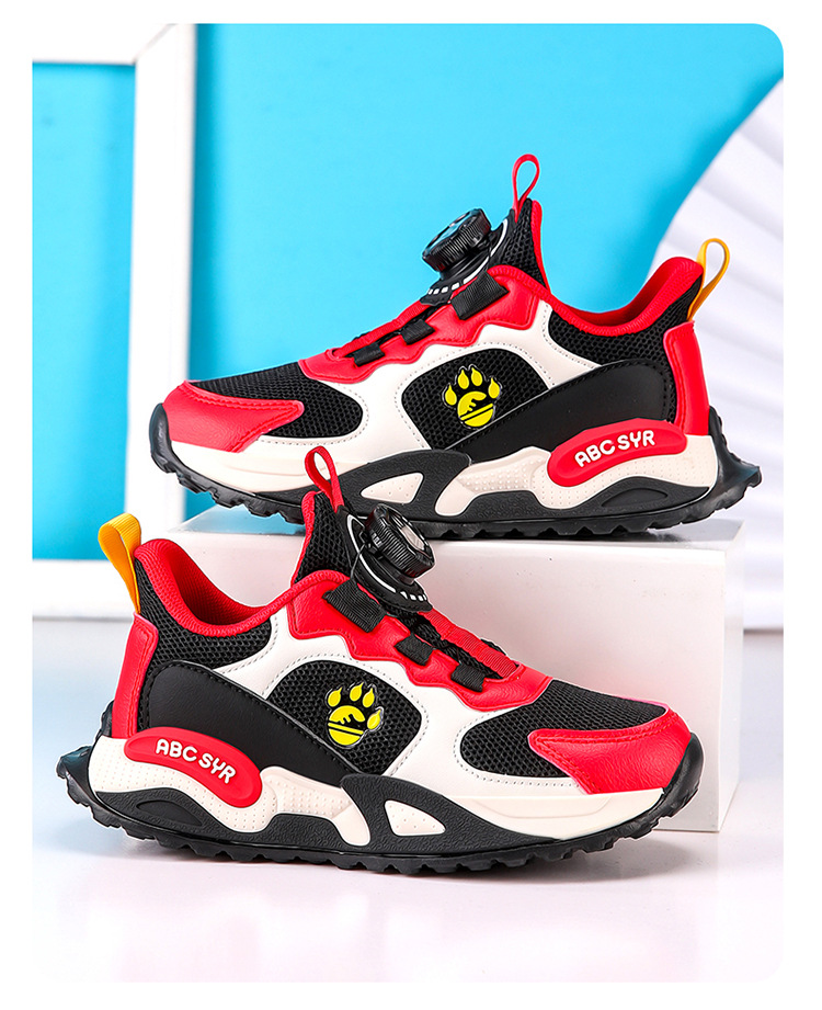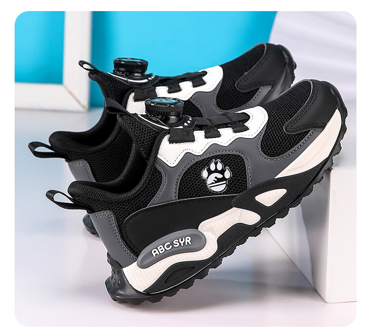 어린이 운동화 2025 봄과 가을 새로운 더블 넷 통기성 회전 버클 소녀 달리기 신발 초등학교 소년