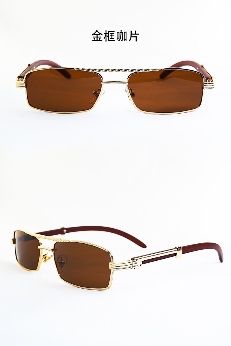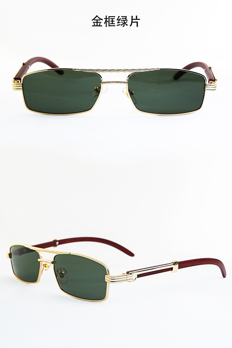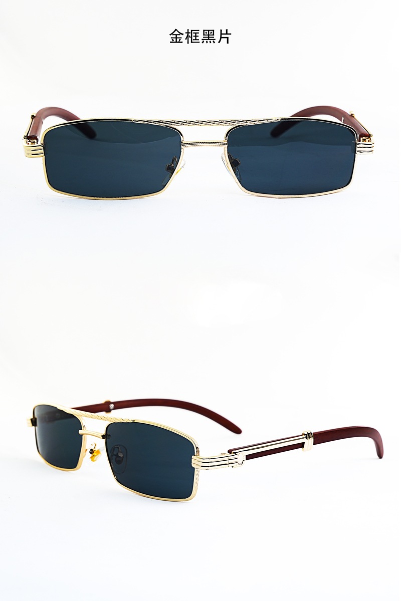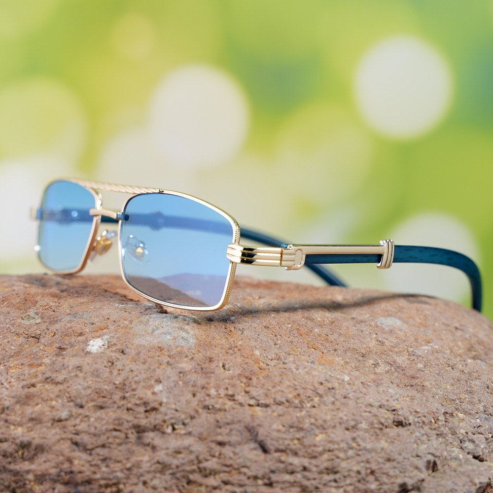 금속 프레임 작은 상자 선글라스 바다 조각 나무 곡물 다리 유니섹스 선글라스 펑크 스타일 더블 빔 듀플렉스 스타일
