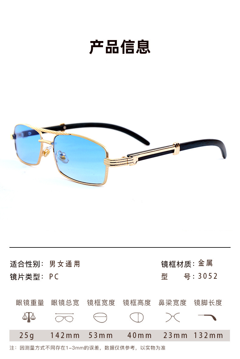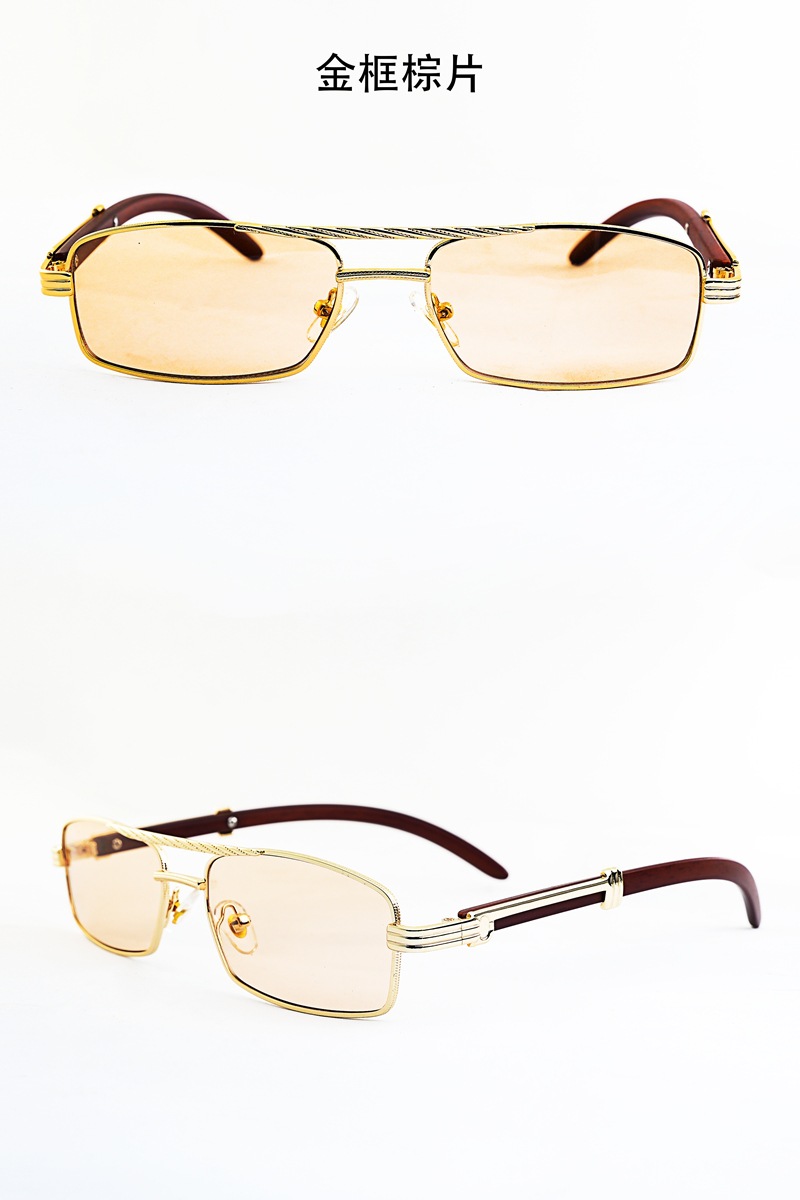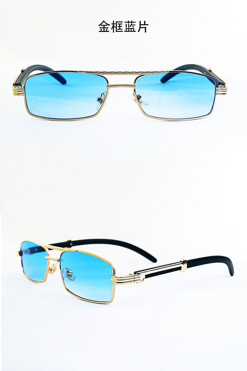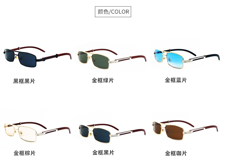 금속 프레임 작은 상자 선글라스 바다 조각 나무 곡물 다리 유니섹스 선글라스 펑크 스타일 더블 빔 듀플렉스 스타일