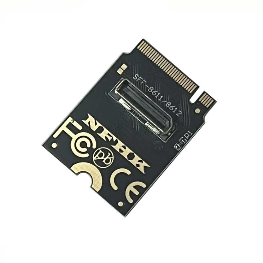 本产品仅支持用SSF-8611转SFF-8639线材接U.2/U.3 SFF-8639固态硬盘,本产品不包含SSF-8611转SFF-8639线材!SFF-8611线材插入方向为从硬盘垂直方向插入!