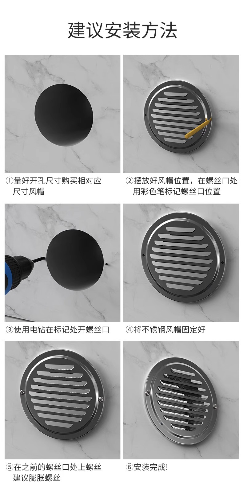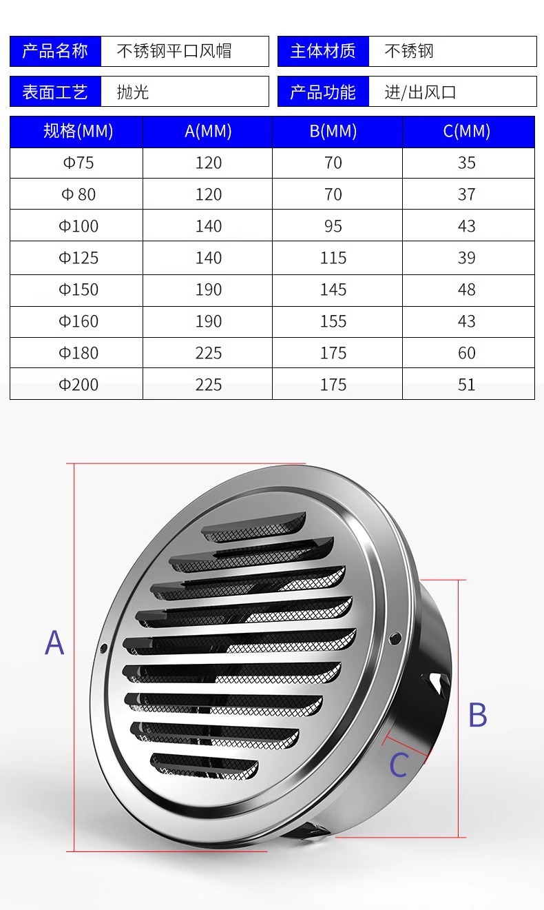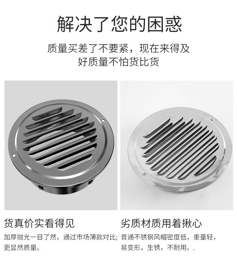 스테인레스 스틸 공기 후드 외벽 공기 출구 범위 후드 배기 파이프 환기 그물 커버 신선한 공기 배출 드래프트 쉴드 배기 포트스토어 가기