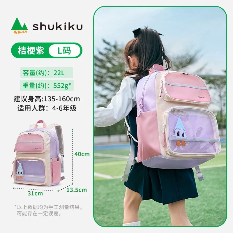 • 재미있고 귀여운 어린이 척추 보호 책가방 - 도라지 퍼플 L