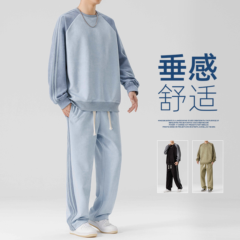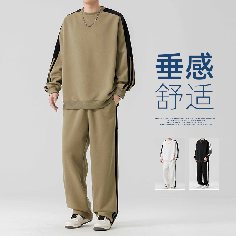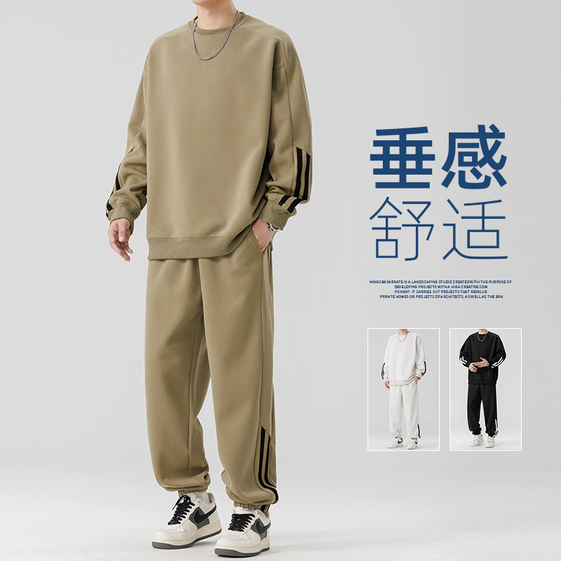 크루 넥 땀 남자 봄 가을 레저 스포츠 세트 아메리칸 스타일 어퍼 의류 트렌디 브랜드 남성 의류 세트 매칭 투피스 세트스토어 가기