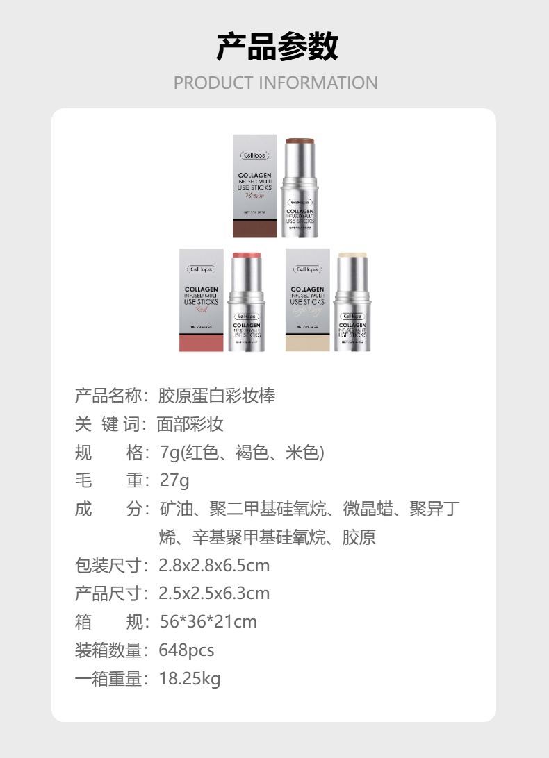EELHOPE 콜라겐 메이크업 스틱 보습 천연 멀티 컬러 블러시 립스틱 높은 광택 메이크업 스틱