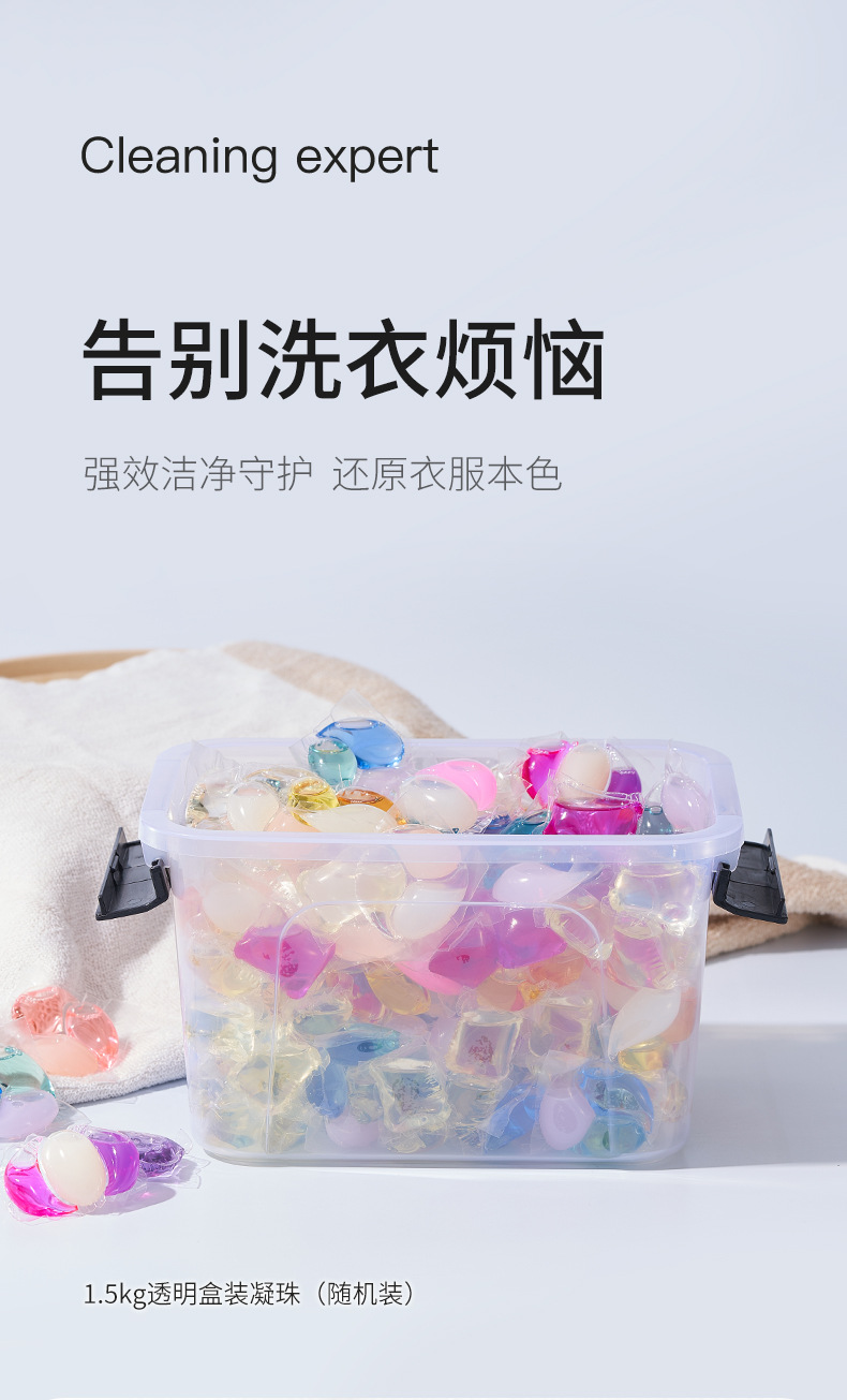 1、此款洗衣凝珠规格为:1.5kg透明盒装,凝珠随机按纯单腔、纯三腔或单三腔混装的规格装盒(即部分订单含多种不同的腔体、香型或颜色等)