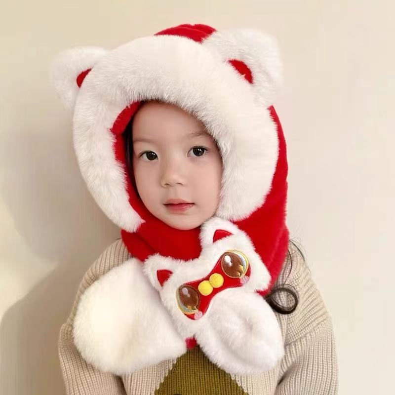 가을과 겨울 아기 모자 귀여운 봉제 스카프 통합 모자 빨간 사자 춤 새해 축제 따뜻한 모자 소년 소녀