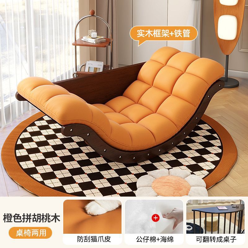 바나나 흔들 의자 간단한 게으른 솔리드 우드 싱글 소파 새로운 스타일 발코니 레코더 거실 홈 레트로 레저 흔들 의자스토어 가기