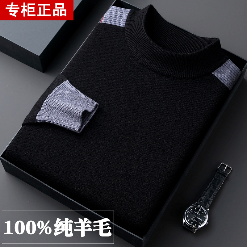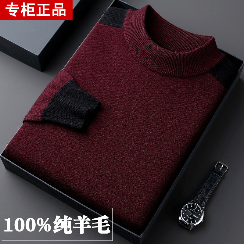 남성용 울 스웨터, 하프 터틀넥, 겨울용 두꺼운 중년 남성 스웨터, 대형 단색 아빠옷, 따뜻한 캐시미어 스웨터