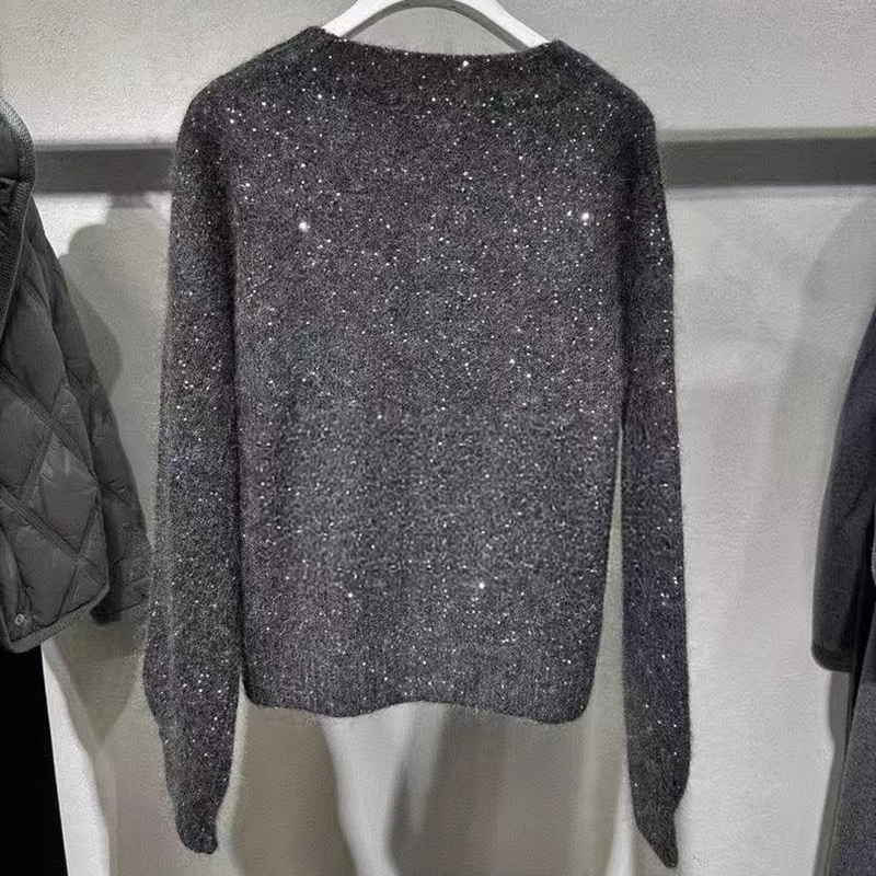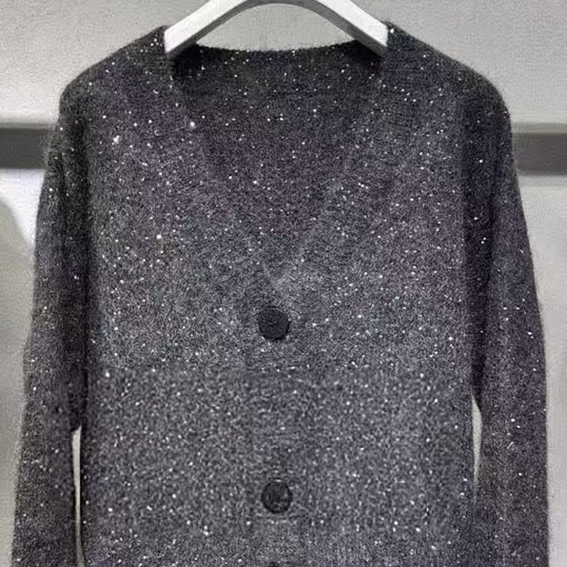 2024 겨울 새로운 회색 V 넥 올 매치 스팽글 긴 소매 니트 카디건 여자 1FC132081G