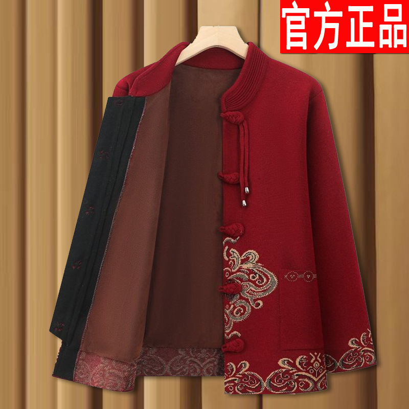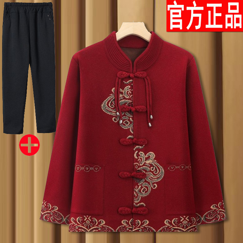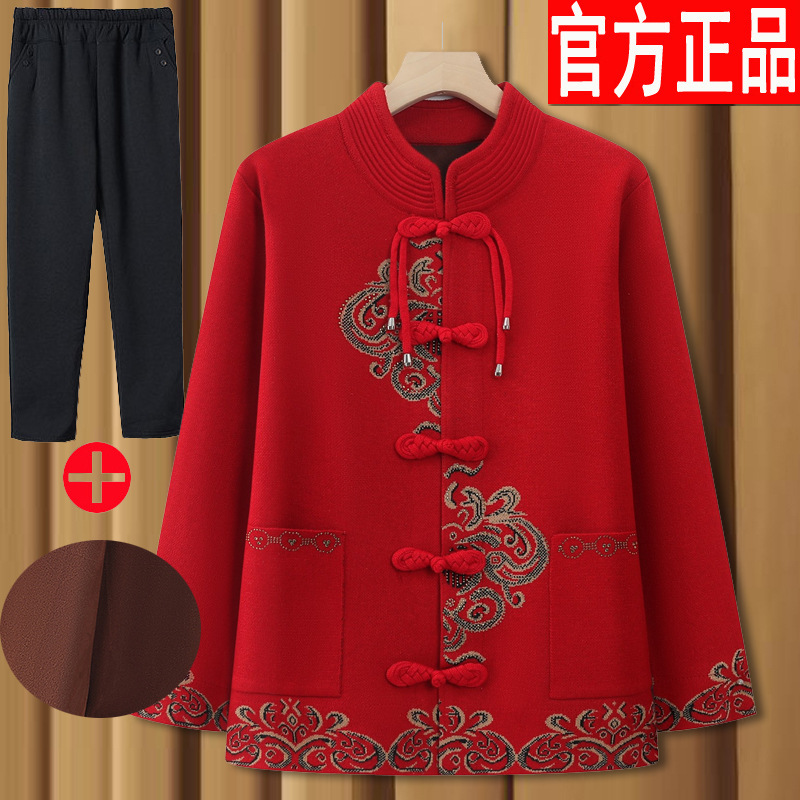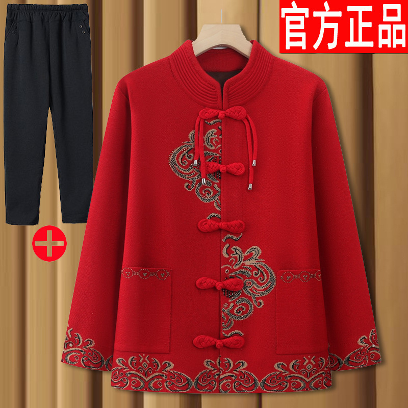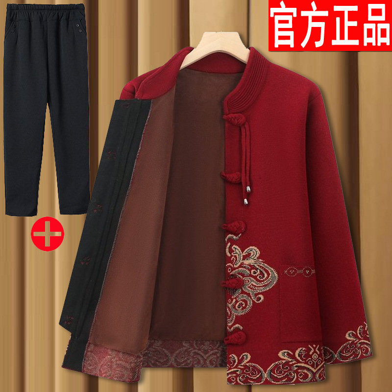 중년 및 노인 할머니 옷 봄과 가을 겨울 스웨터 카디건 기모 축제 결혼식 생일 어머니 노인을위한 여성 의류스토어 가기