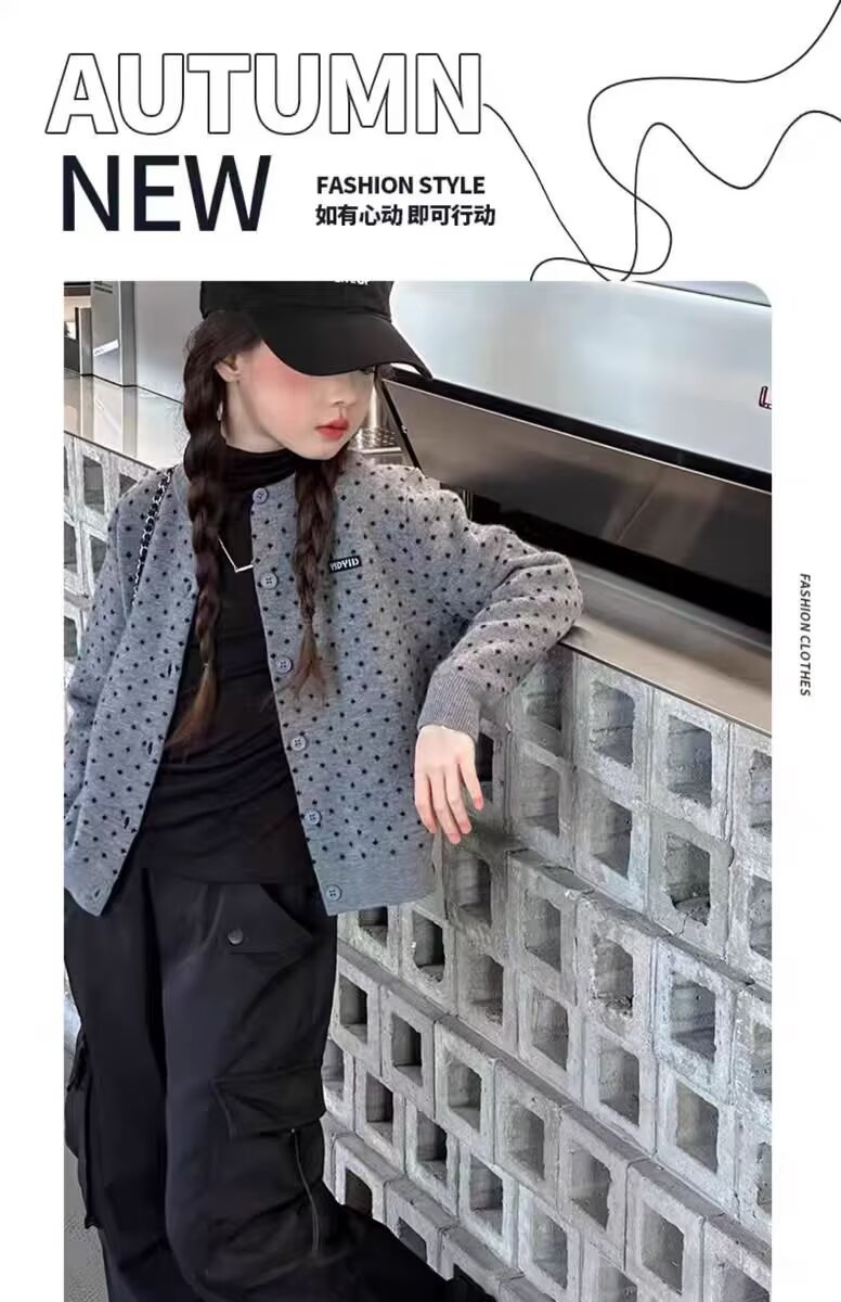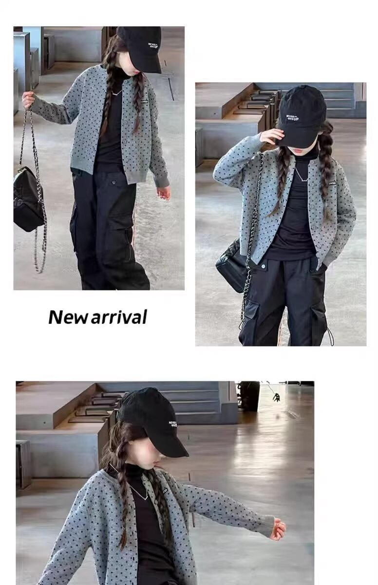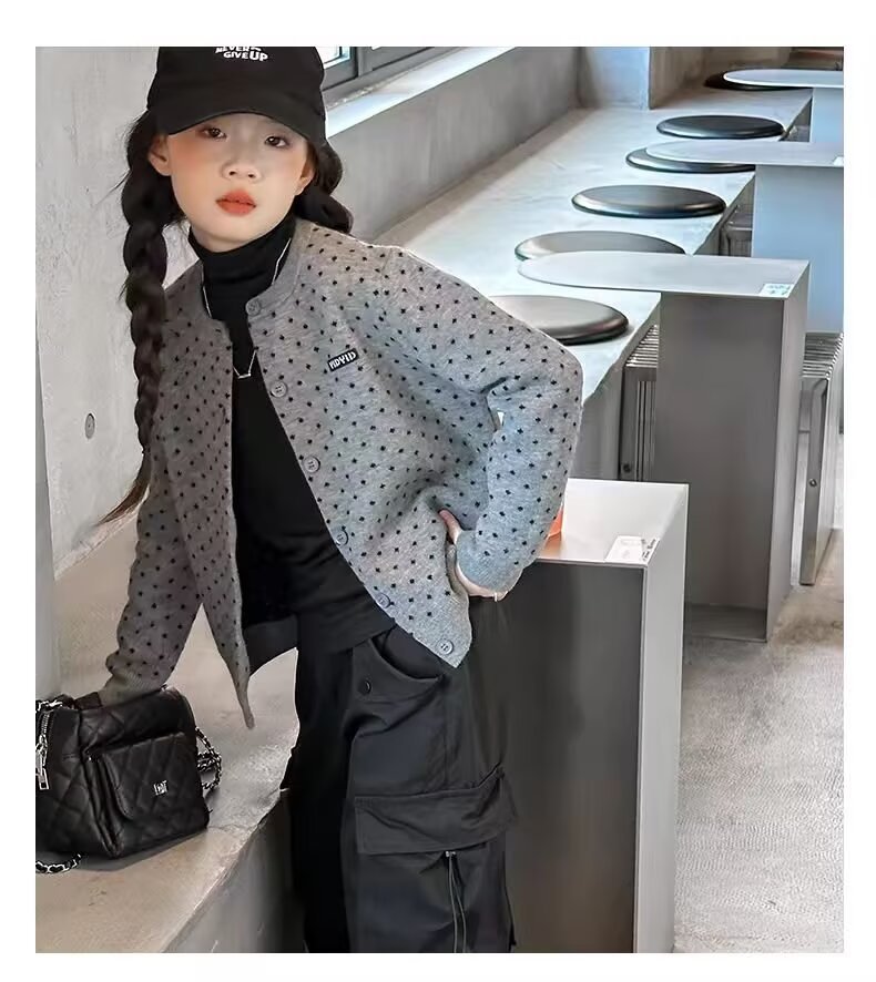 소녀 니트 코트 2024 새 스타일 소녀 서양식 카디건 어린이 가을 한국 스타일 올 매치 폴카 도트 탑스토어 가기