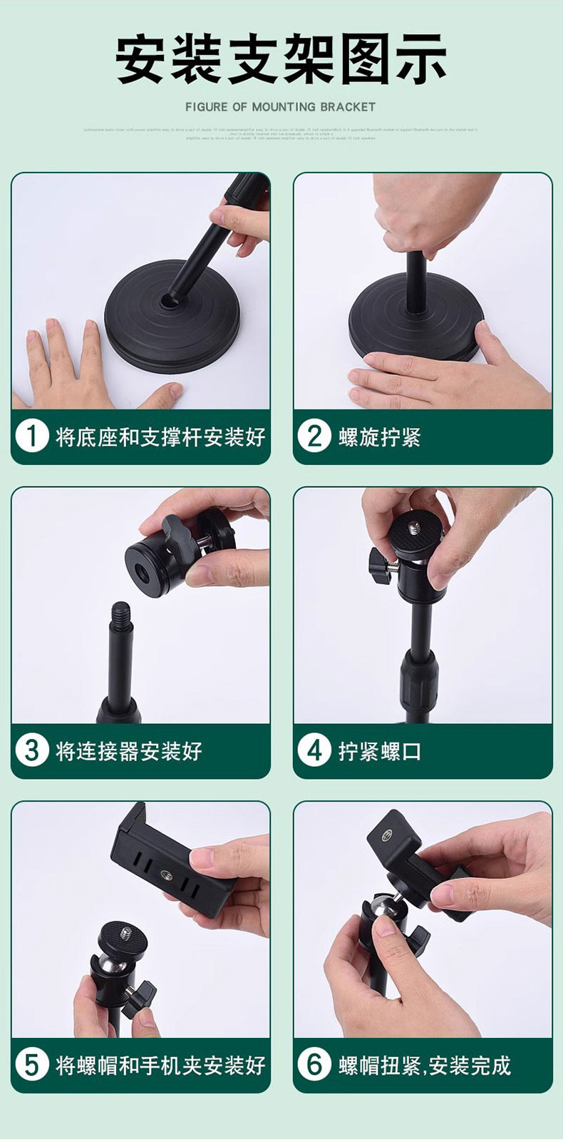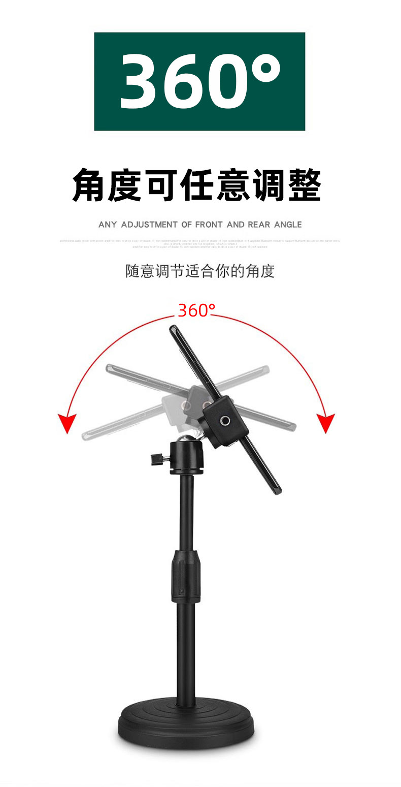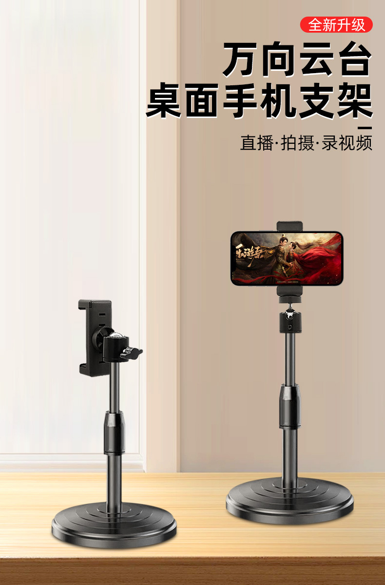 휴대 전화 라이브 방송 브래킷 휴대용 데스크톱 무료 텔레스코픽 리프팅 틸트 지원 프레임 유니버설 팬 틸트 디스크 브래킷