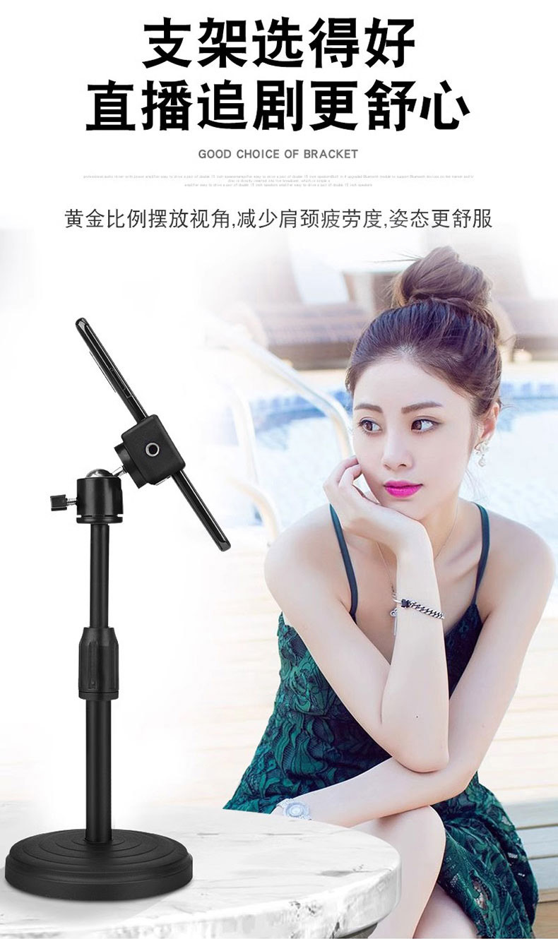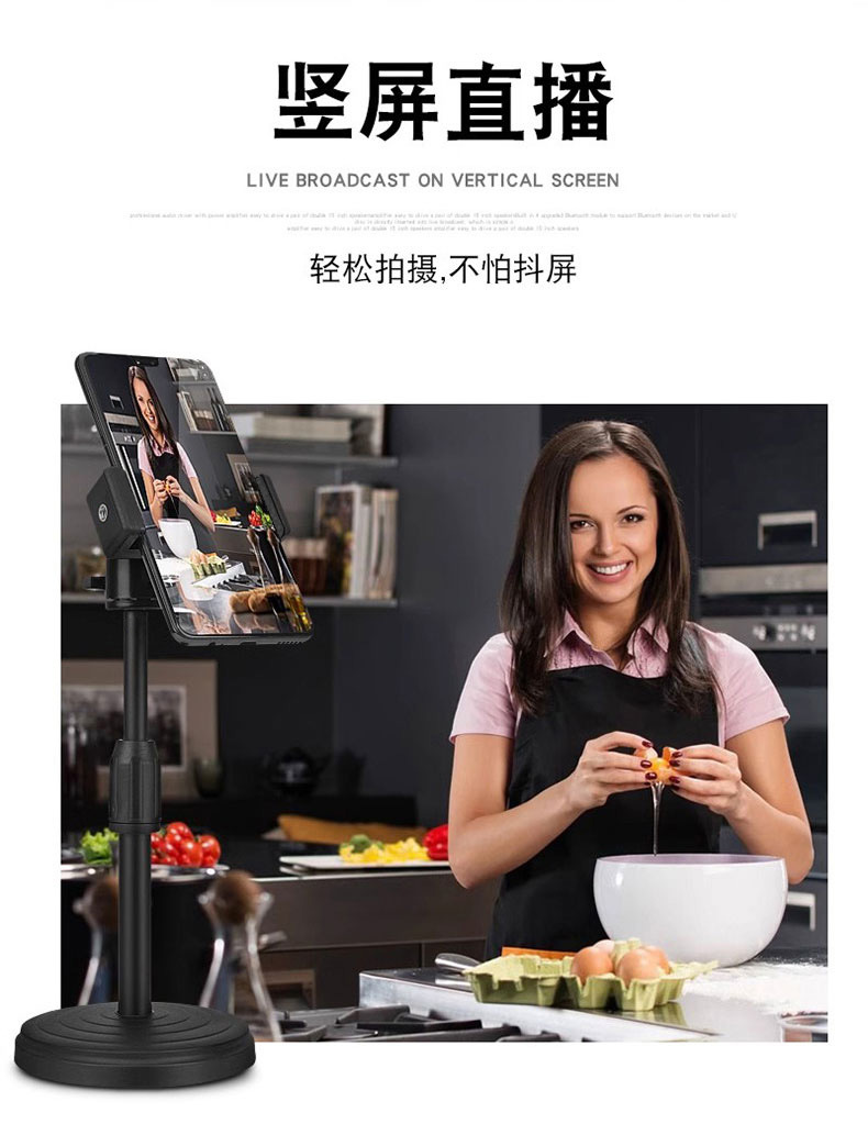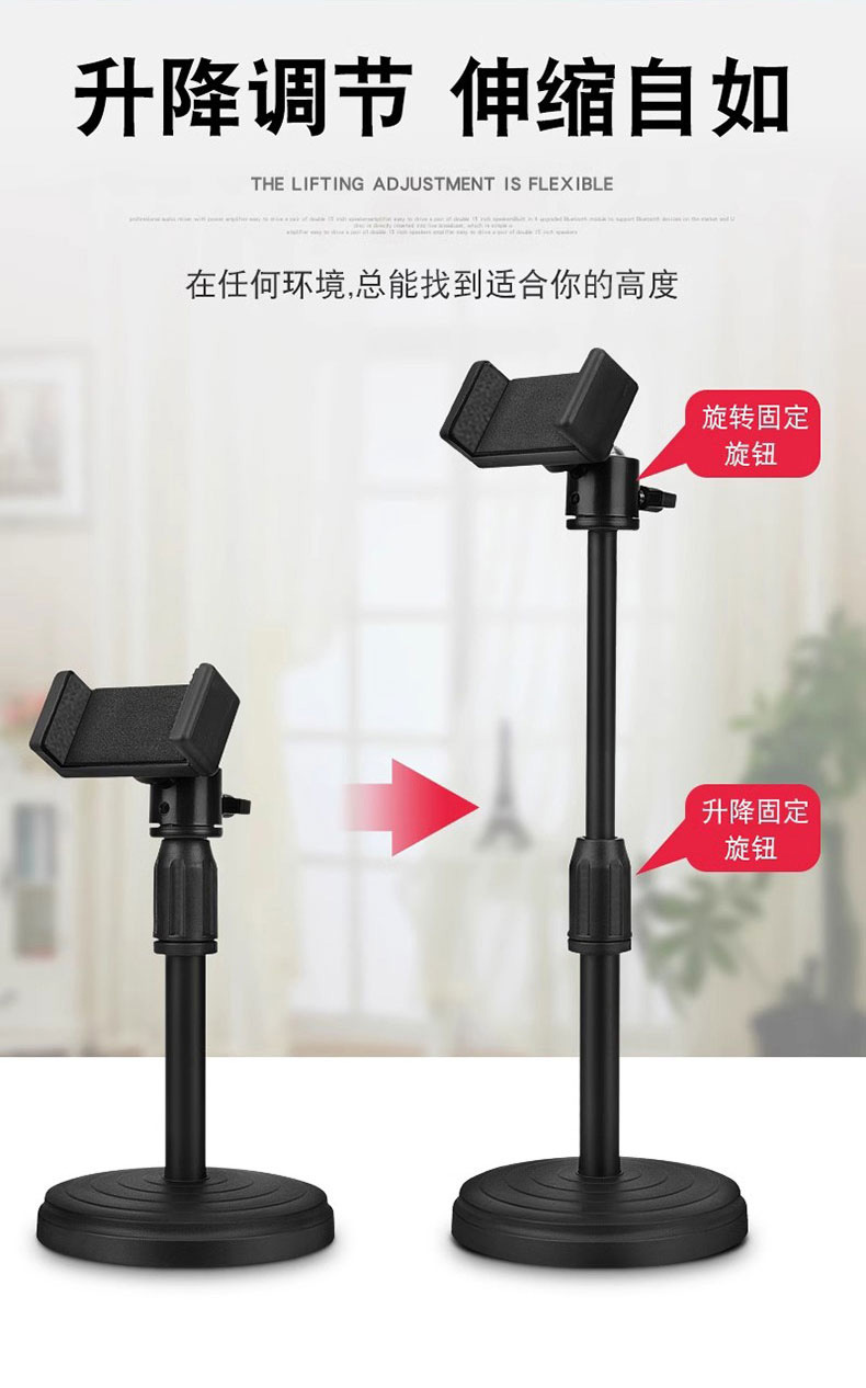 휴대 전화 라이브 방송 브래킷 휴대용 데스크톱 무료 텔레스코픽 리프팅 틸트 지원 프레임 유니버설 팬 틸트 디스크 브래킷스토어 가기