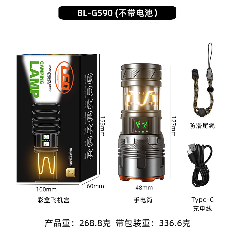 • G590 흰색 레이저 짧은 스타일 [26350 배터리 1개 + 데이터 케이블 + 컬러 박스]