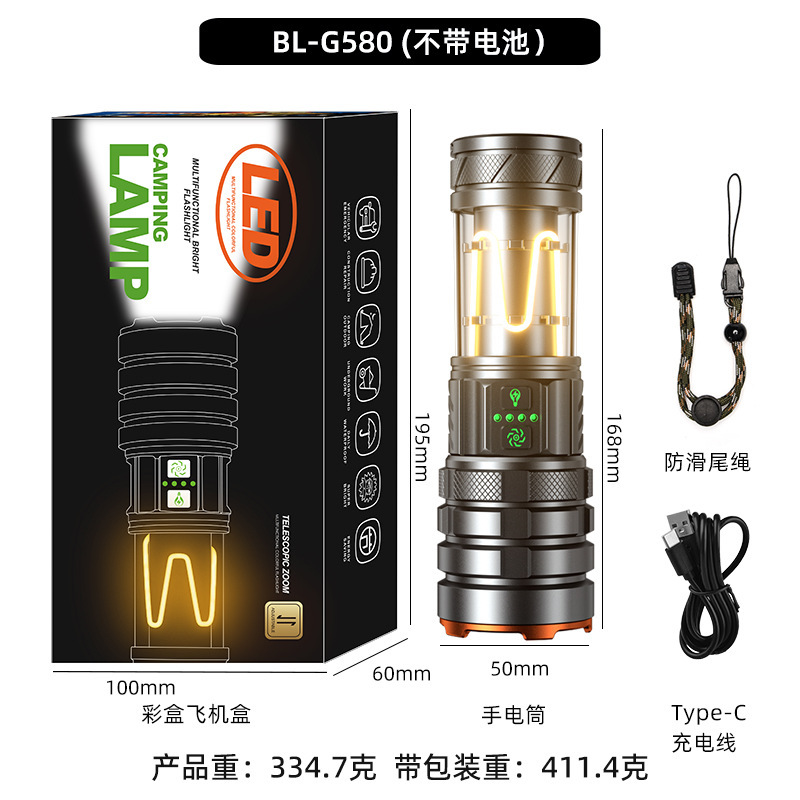 • G580 백색 레이저 손전등 [26650 배터리 1개 + 데이터 케이블 + 컬러 박스]