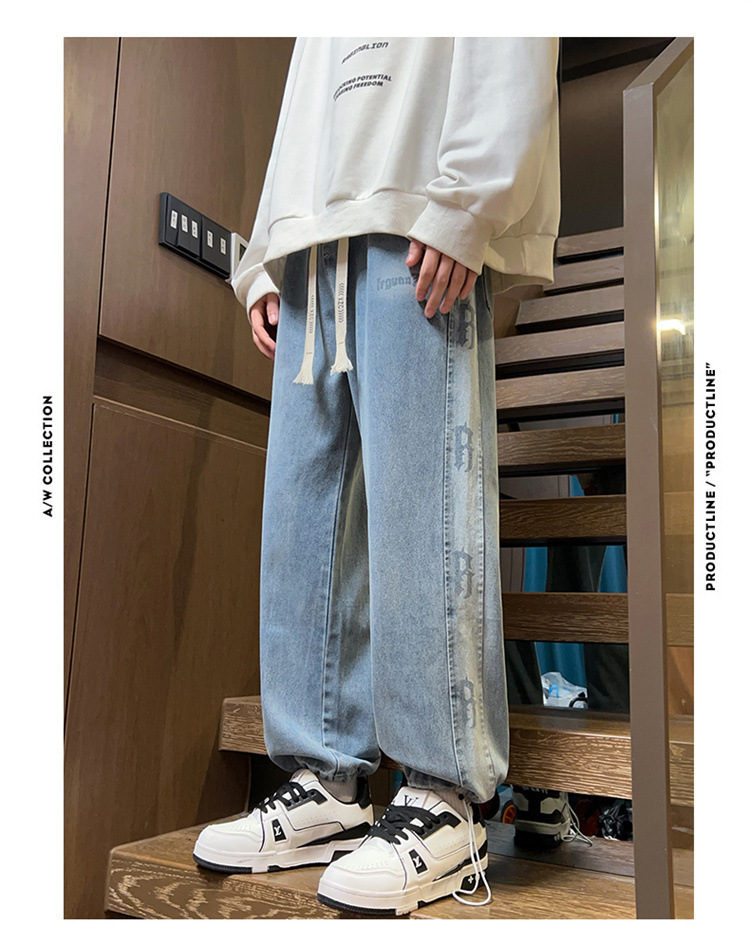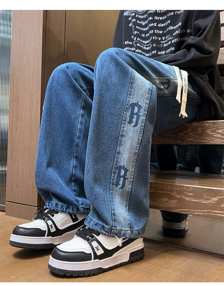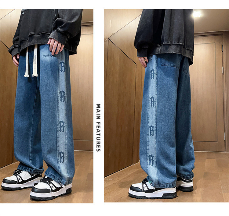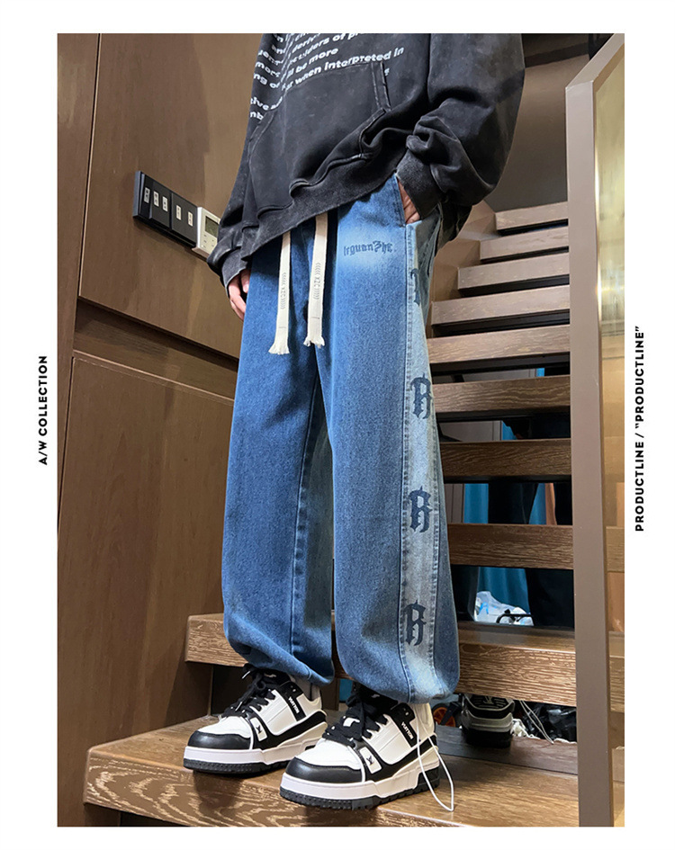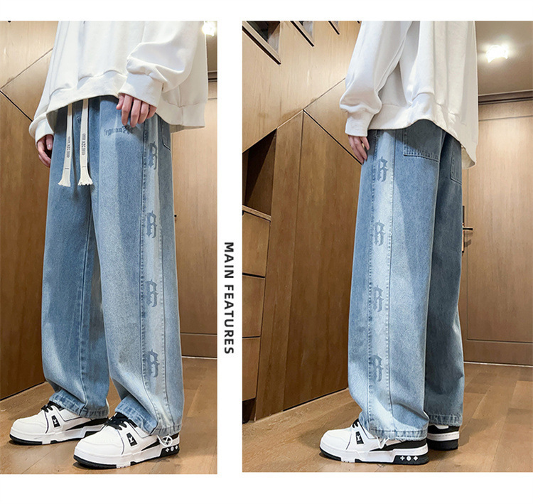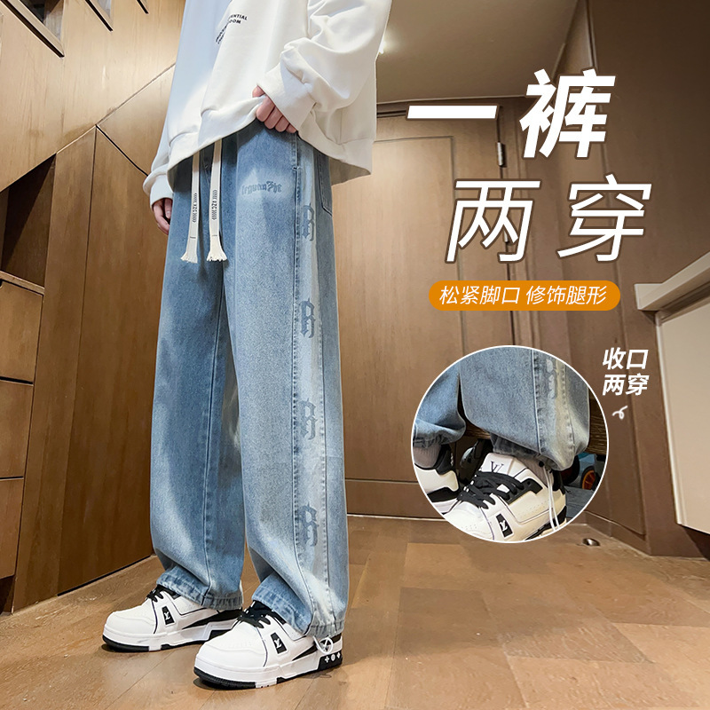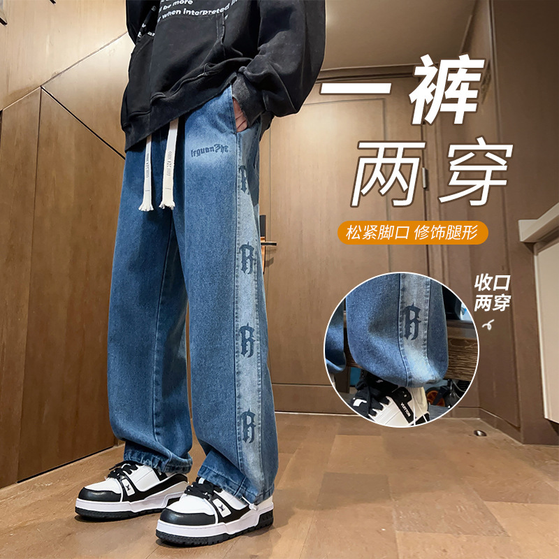 봄과 가을 청소년 데님 바지 소년 중학생 유행 잘 생긴 큰 소년 남자 스트레이트 캐주얼 바지스토어 가기