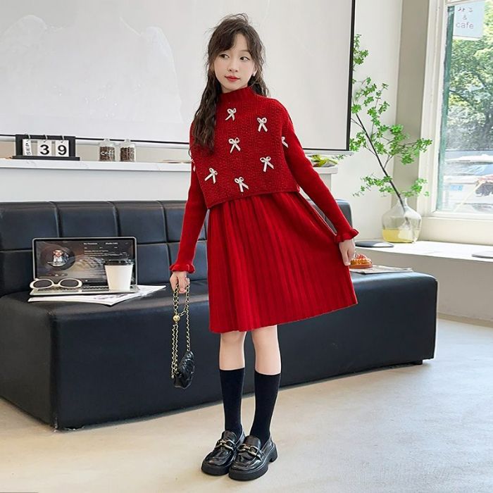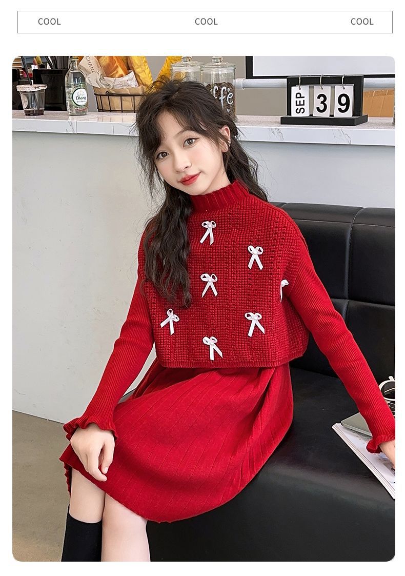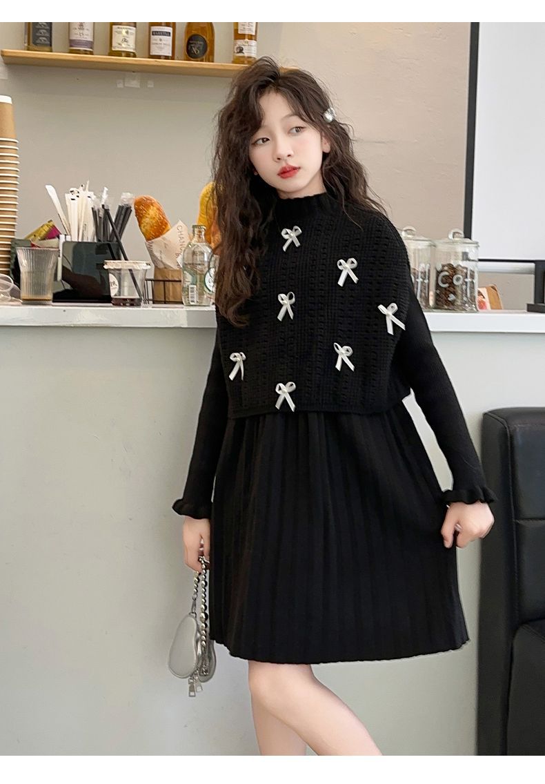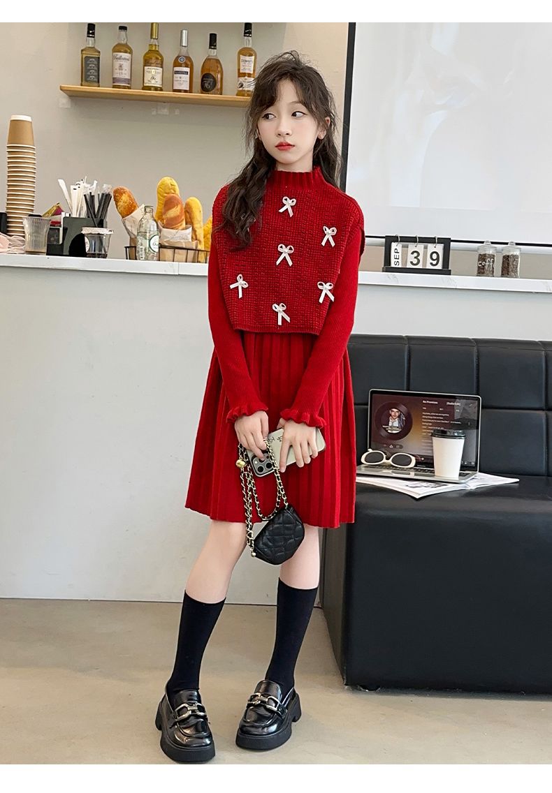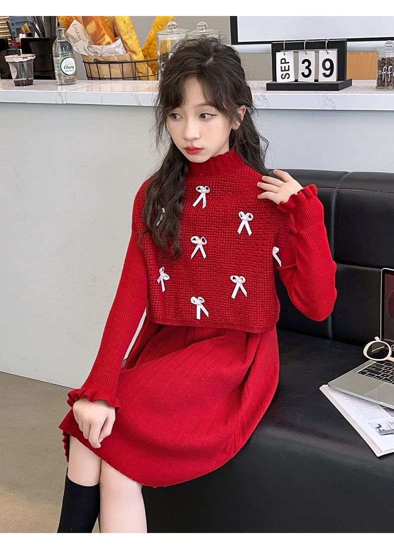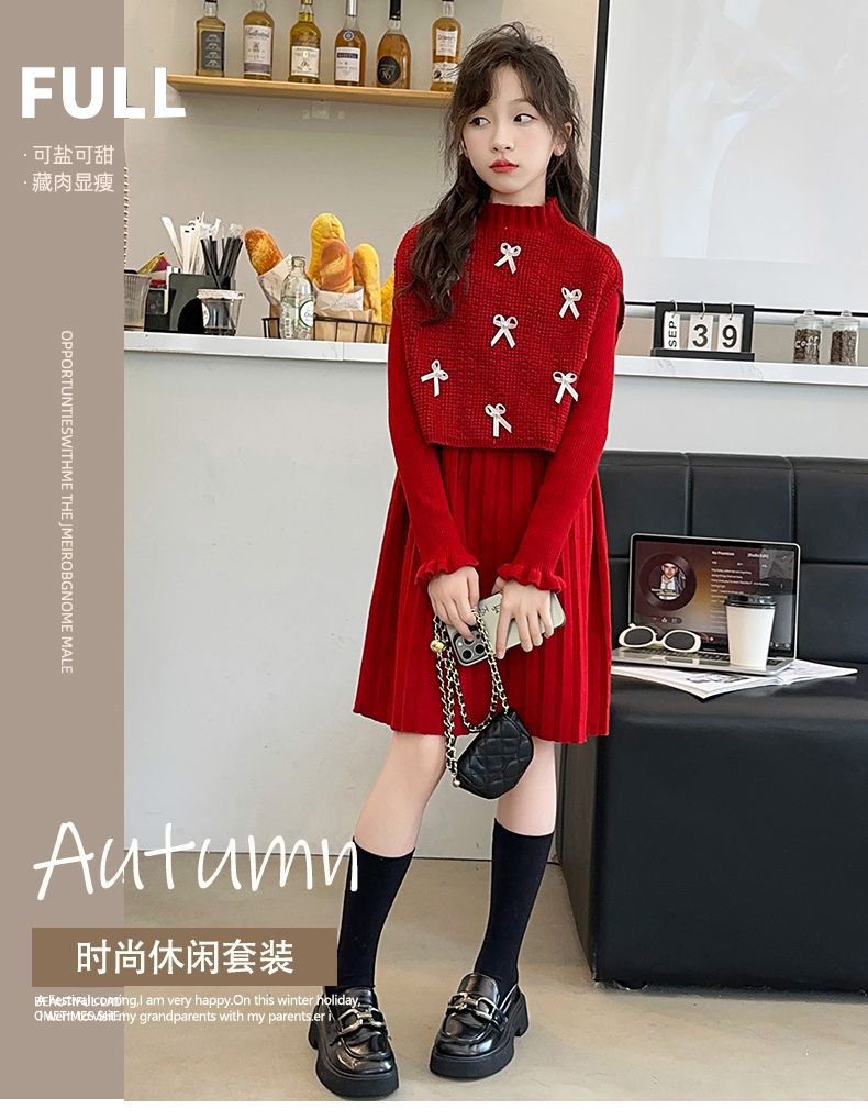 소녀 원피스 가을 겨울 새로운 한국 스타일 유행 중 큰 어린이 니트 조끼 투피스 세트 어린이 단색 스웨터 원피스스토어 가기