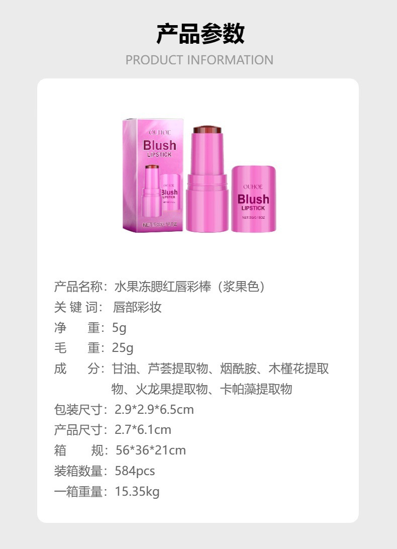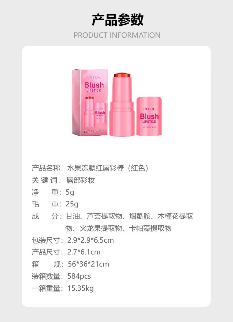 OUHOE 과일 젤리 립글로스 블러셔 스틱 (로즈핑크) 산뜻한 라이트 메이크업 지속력 좋은 블러셔 립글로스 스틱