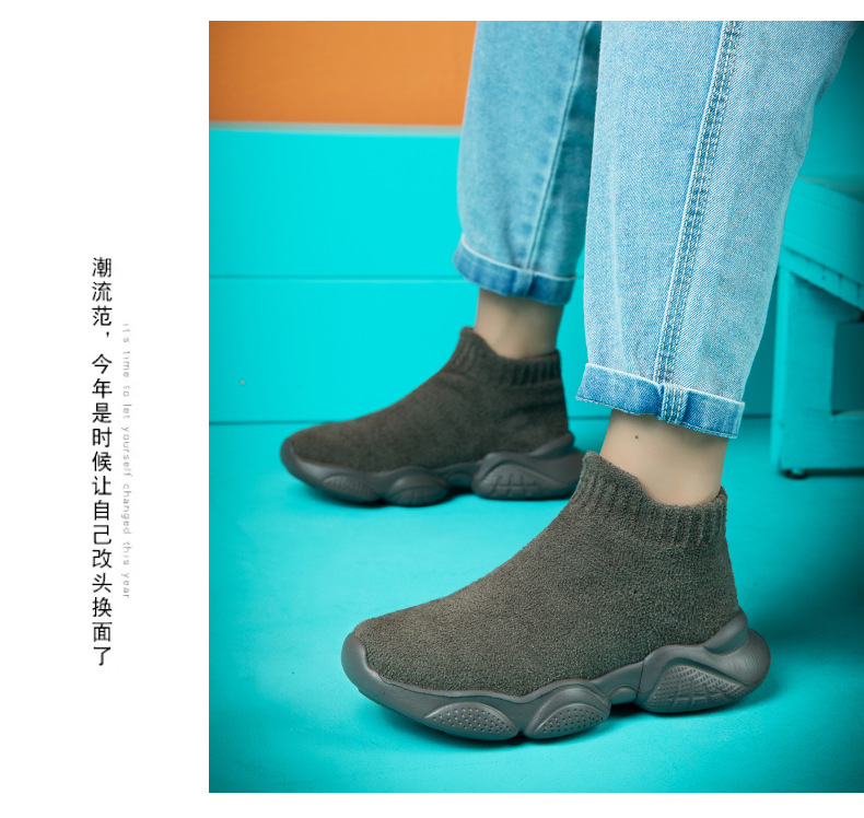 소년 신발 가을 겨울 슬립 온 기모 어린이 양말 신발 소프트 단독 미끄럼 방지 따뜻한 중 및 대형 어린이 운동화 국경스토어 가기