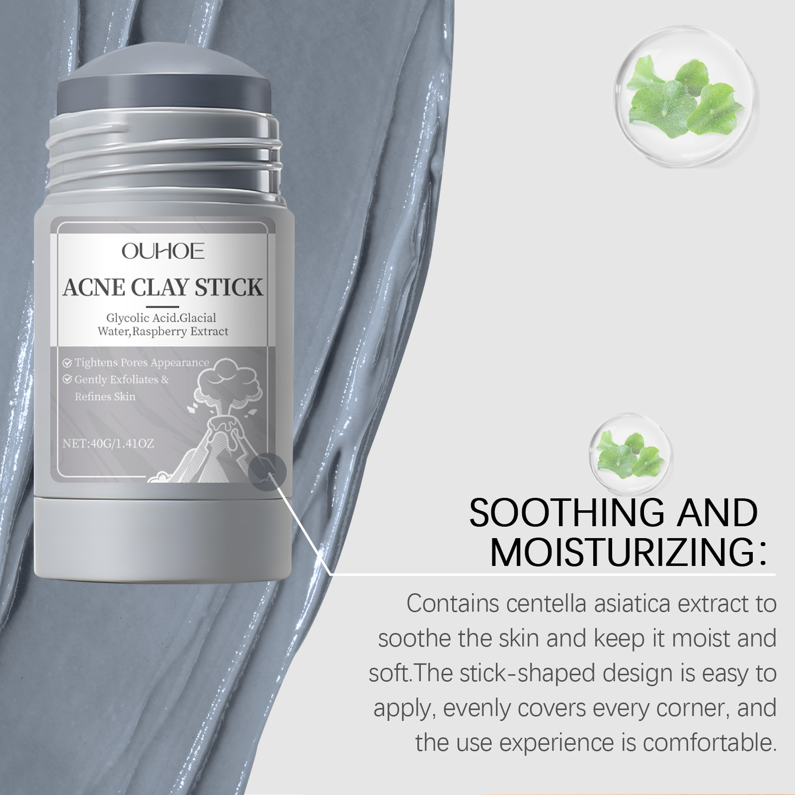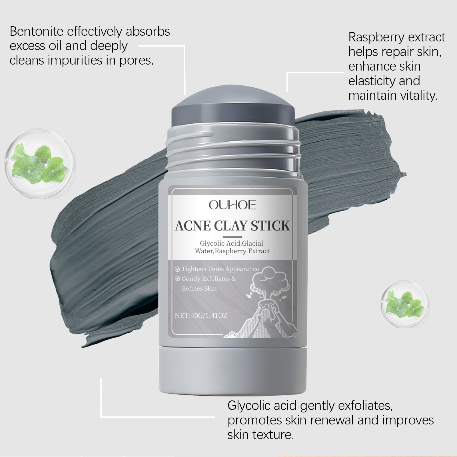 OUHOE Pore 청소 진흙 마스크 스틱 수분 보습 클렌징 얼굴 피부