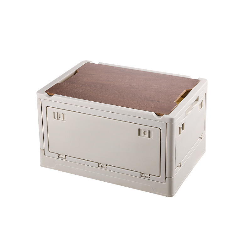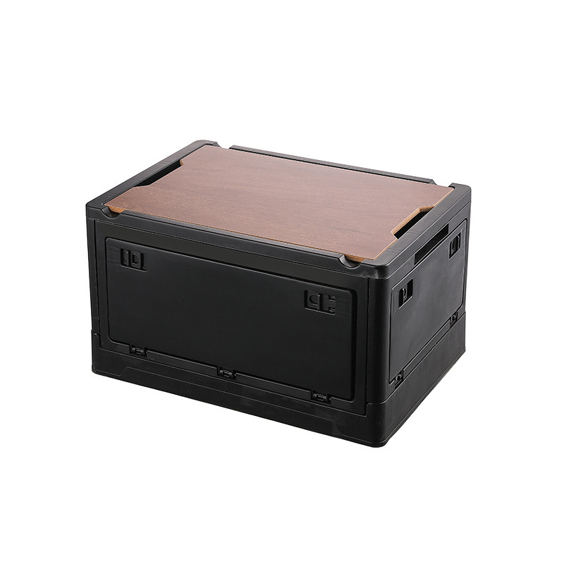 야외 캠핑 저장 상자 사이드 도어 캠핑 나무 뚜껑 접이식 상자 저장 상자 가정용 자동차 트렁크 저장 상자