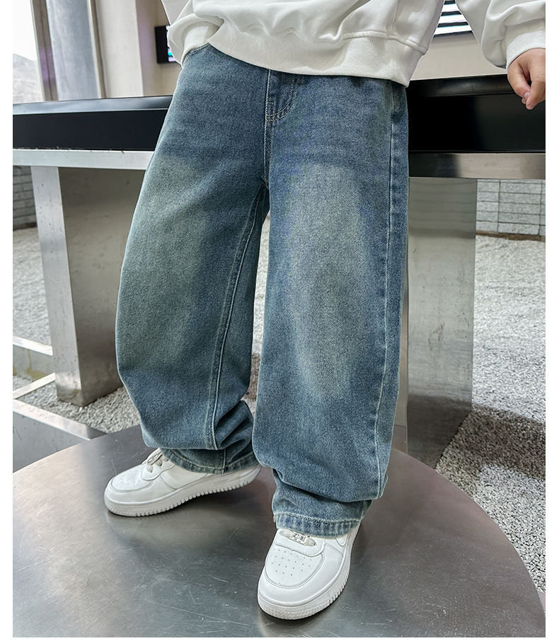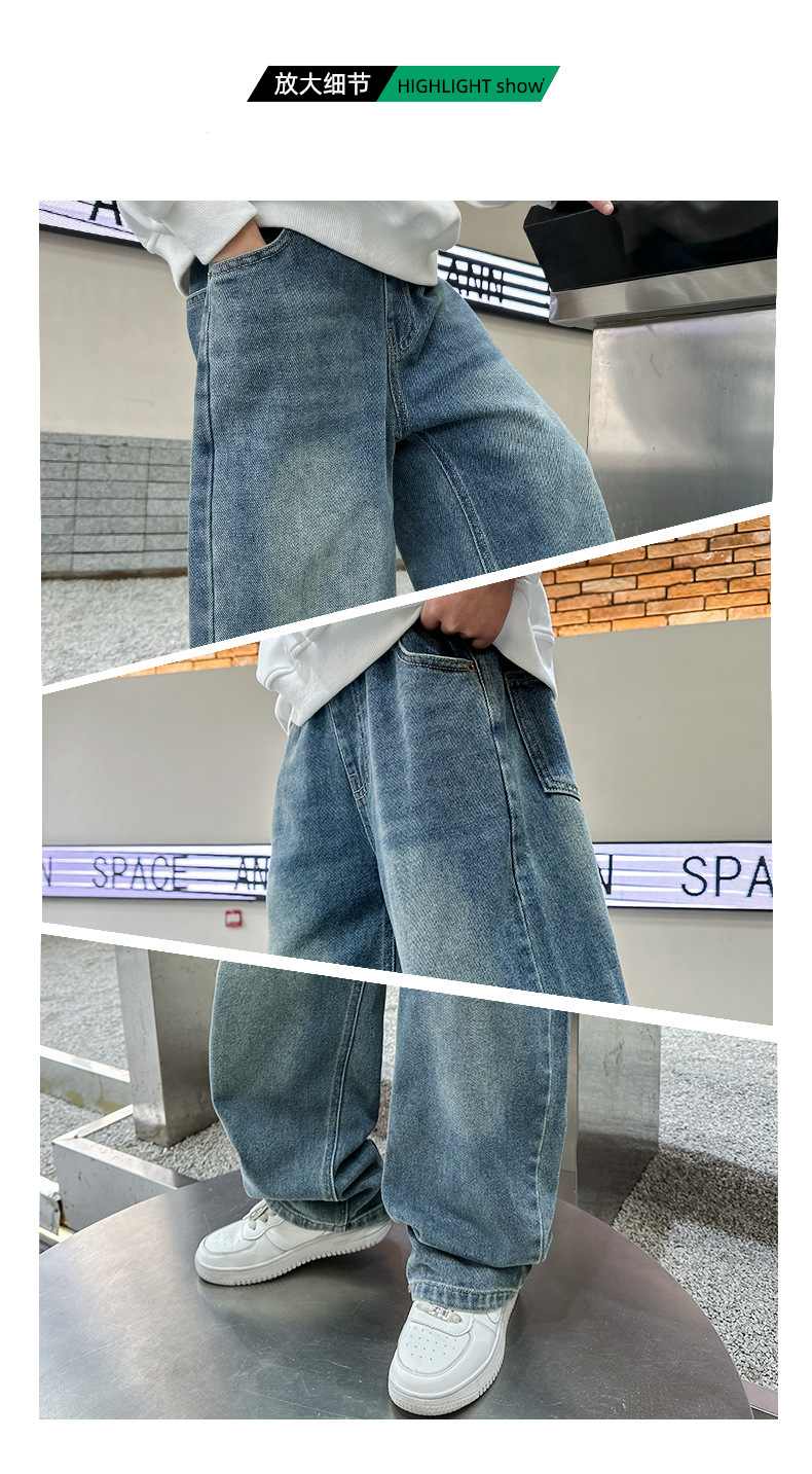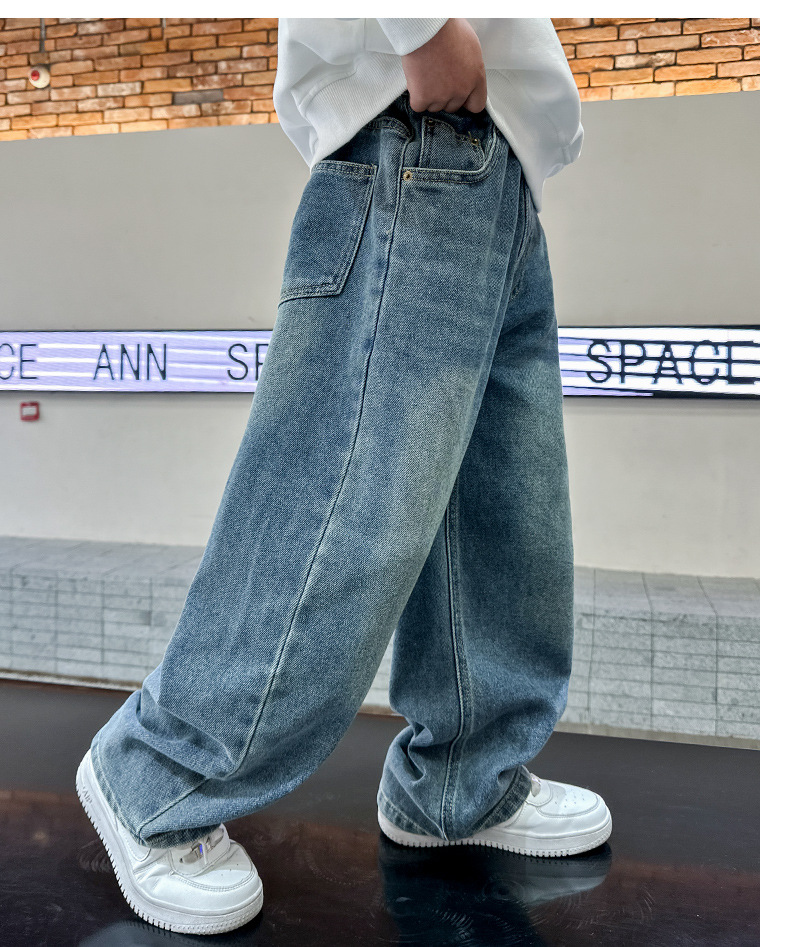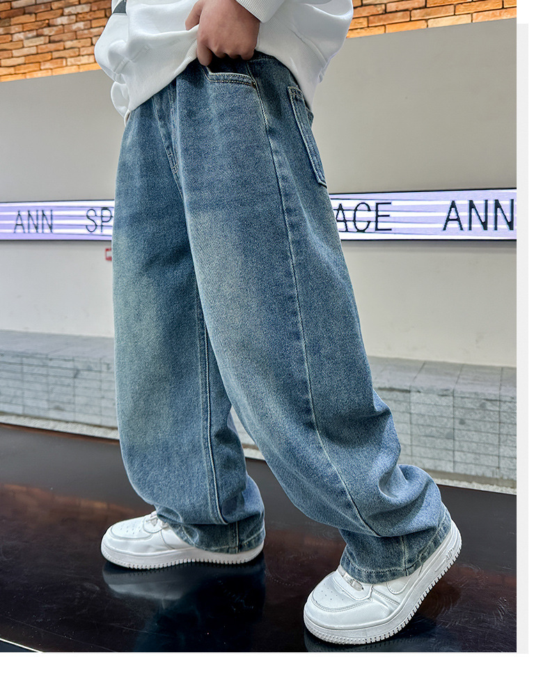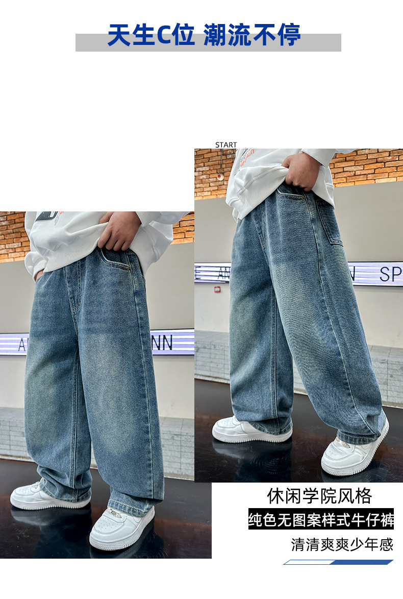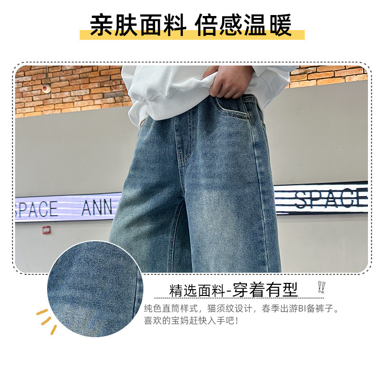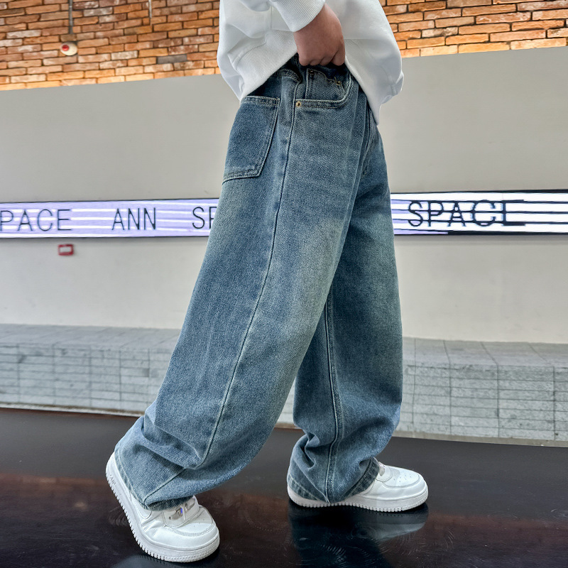남아 청바지 봄, 가을 2025 신상 아동복 가을 멋스러운 신축성 있는 캐주얼 팬츠 큰 아동 가을 의류 트렌드스토어 가기