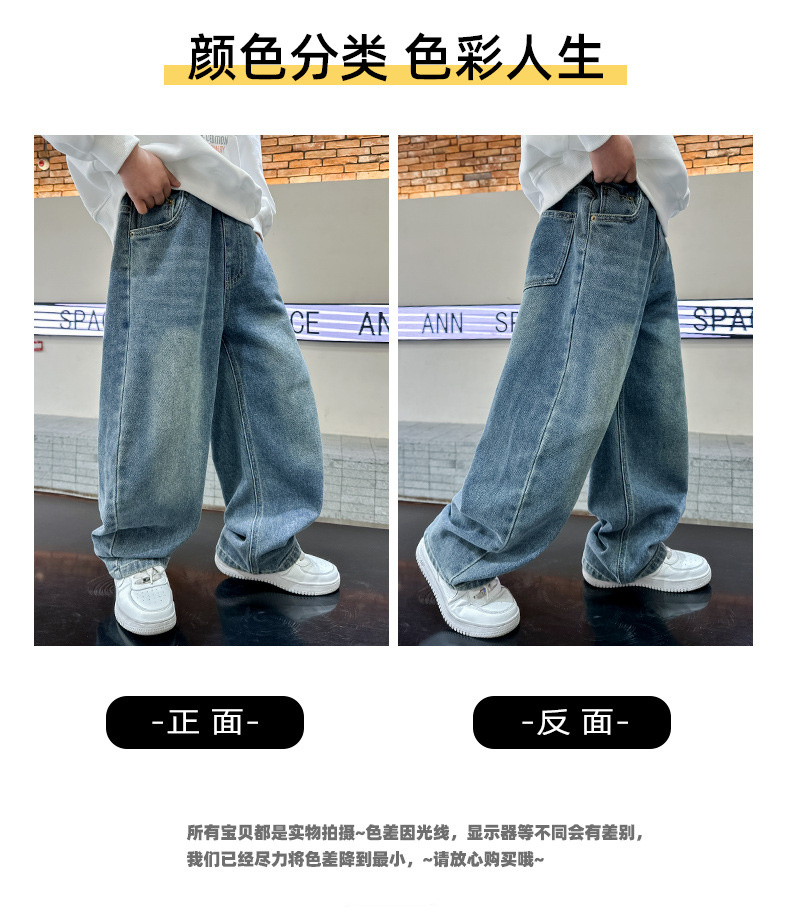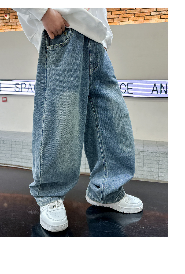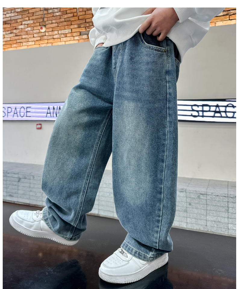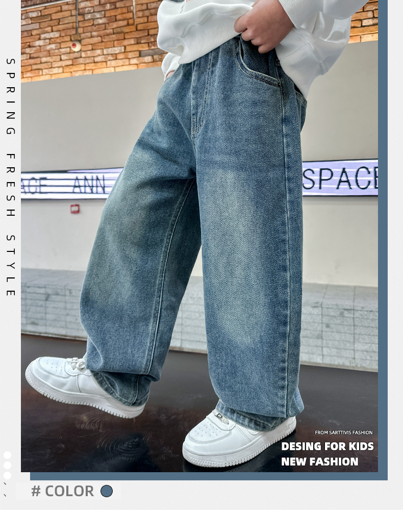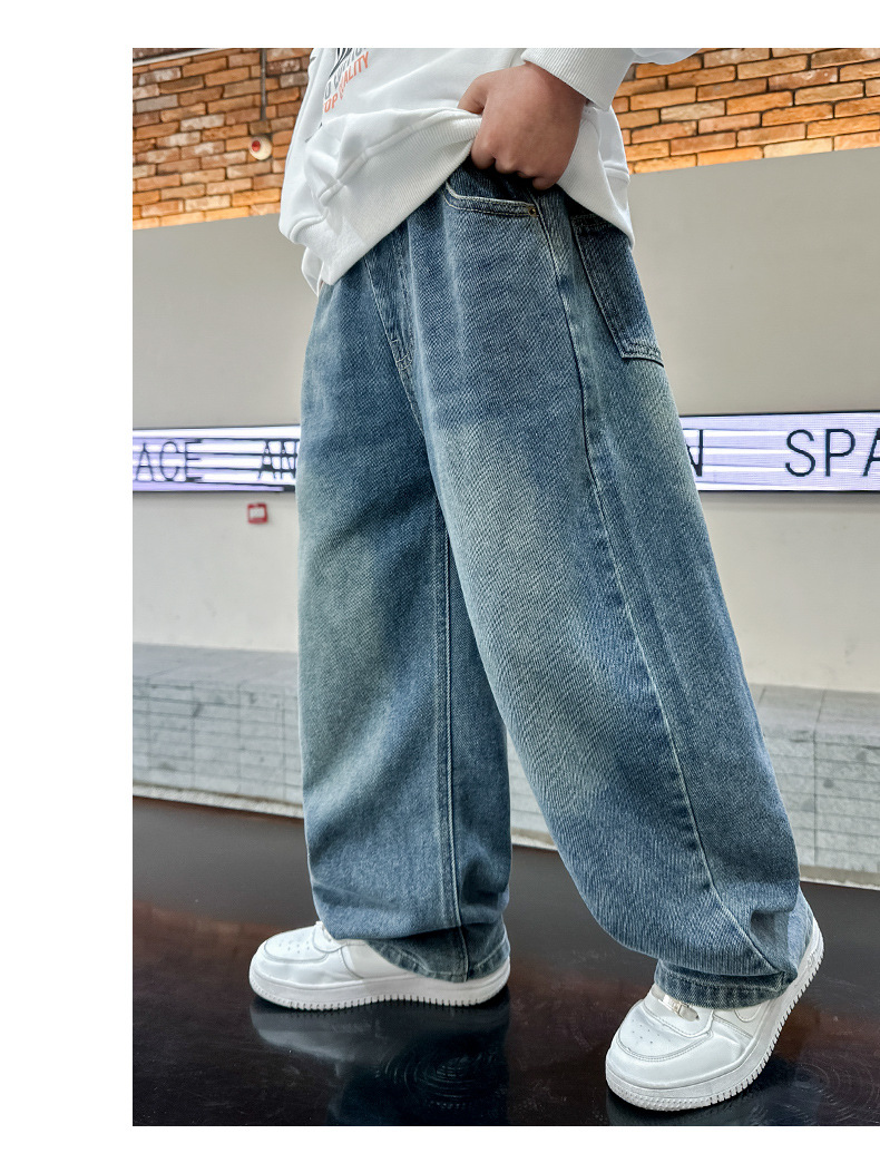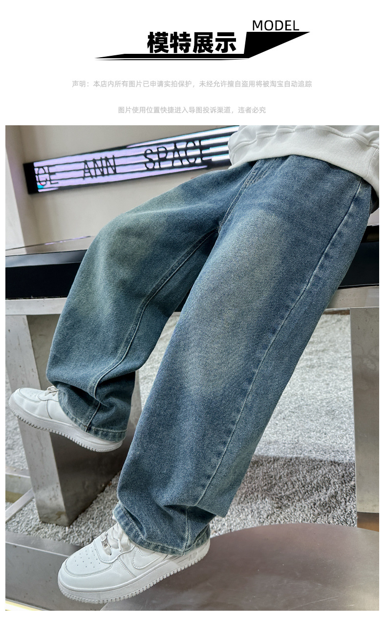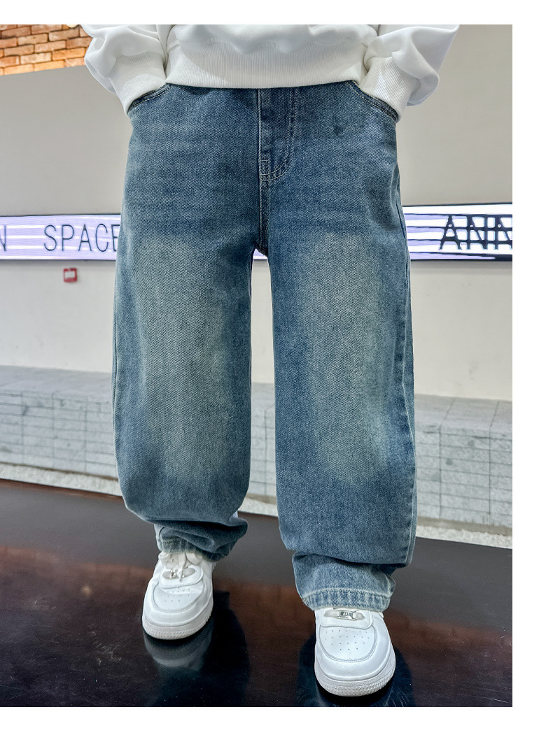 남아 청바지 봄, 가을 2025 신상 아동복 가을 멋스러운 신축성 있는 캐주얼 팬츠 큰 아동 가을 의류 트렌드스토어 가기