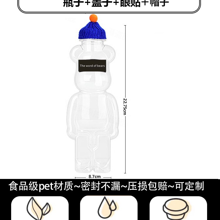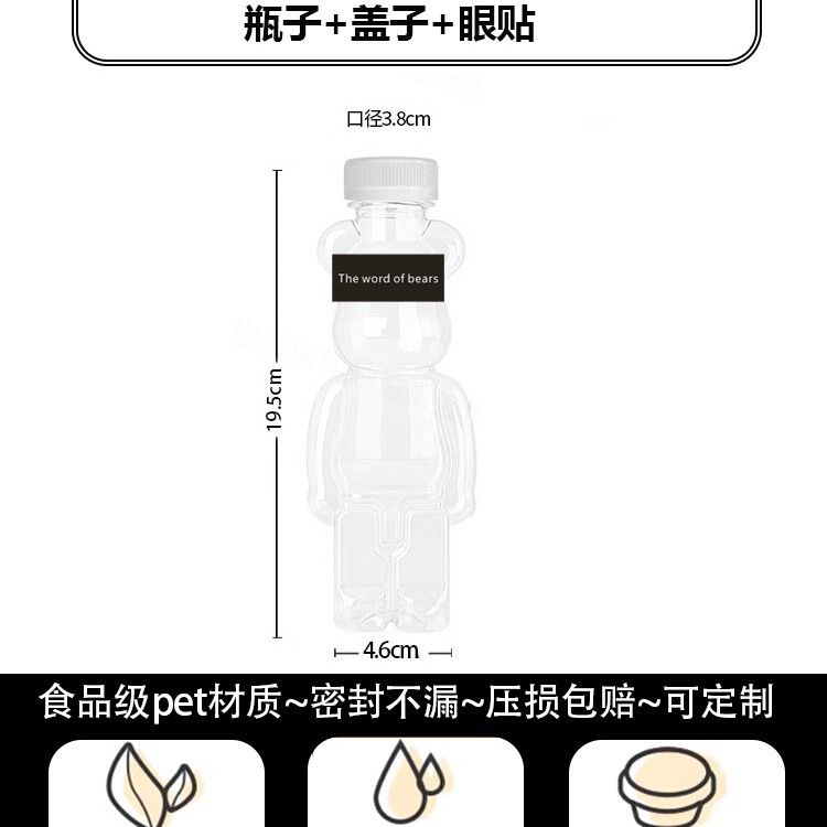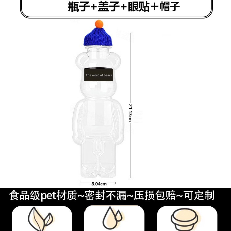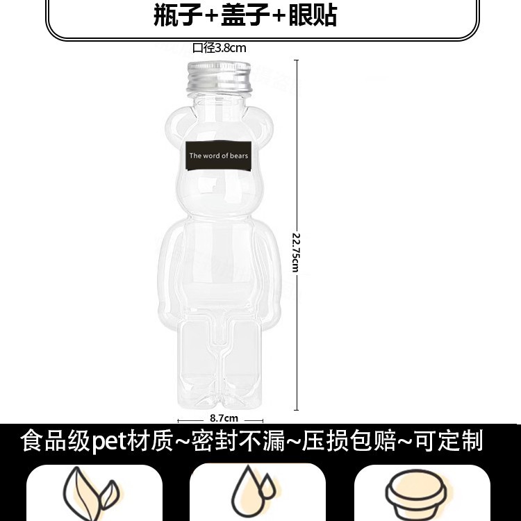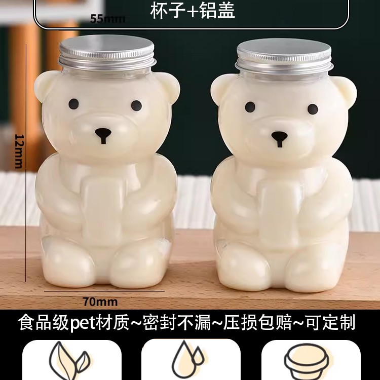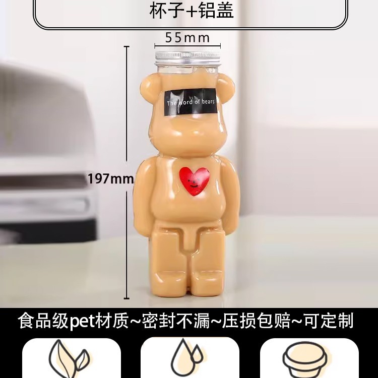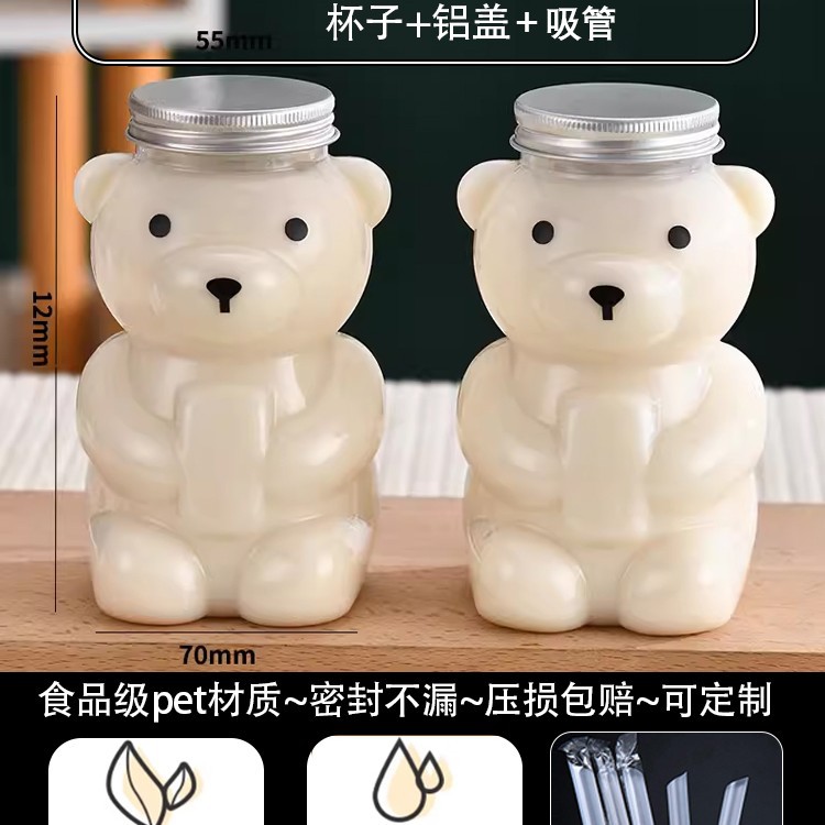 지우 폭력적인 곰 우유 차 컵 일회용 곰 음료 병 상업 뚜껑 만화 플라스틱 과일 오렌지 주스 마구간스토어 가기