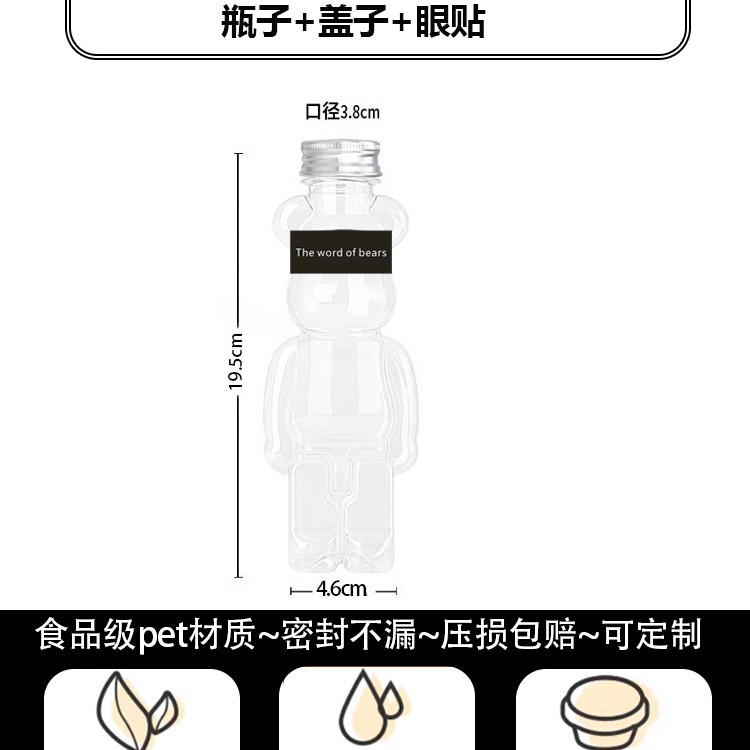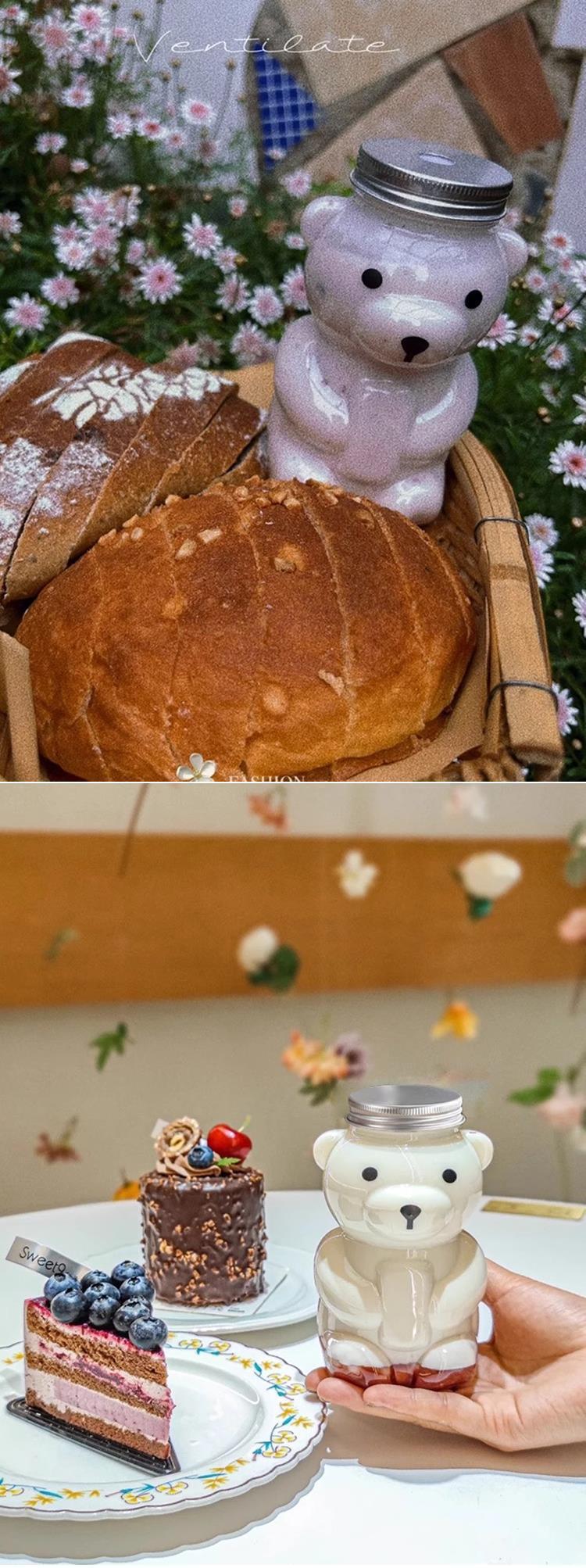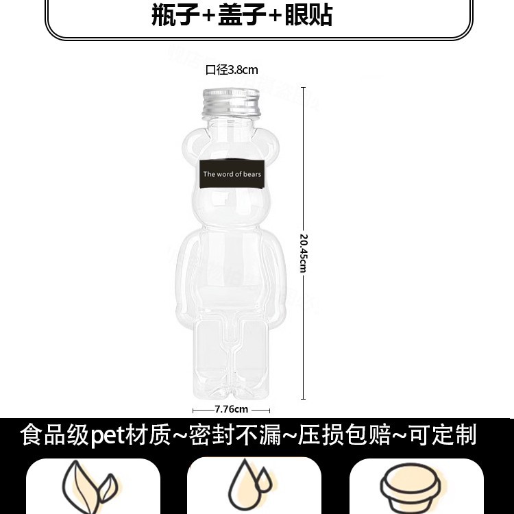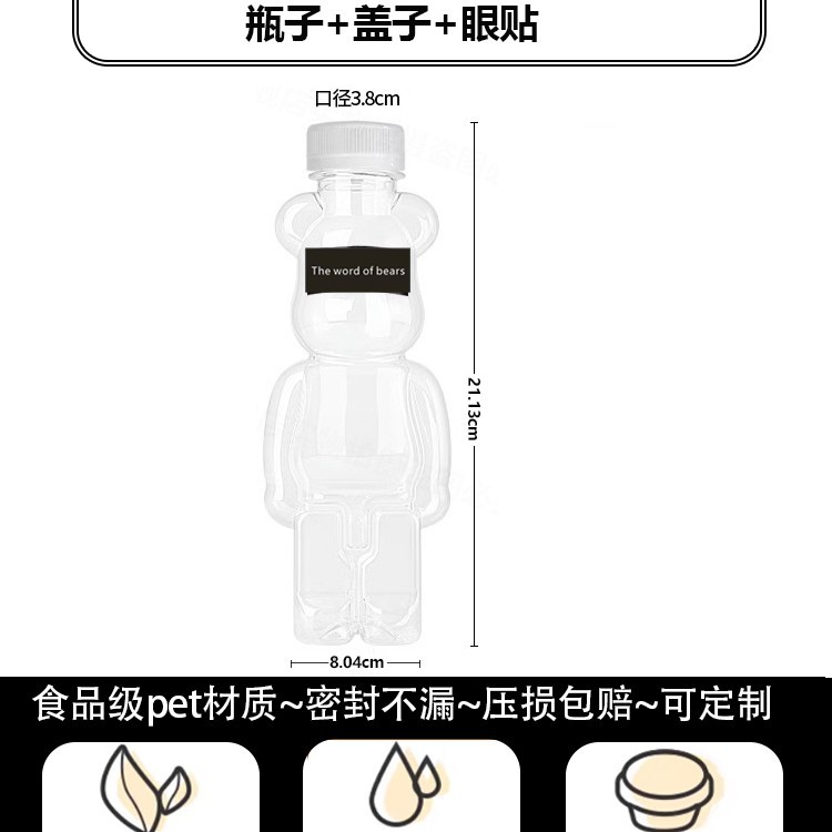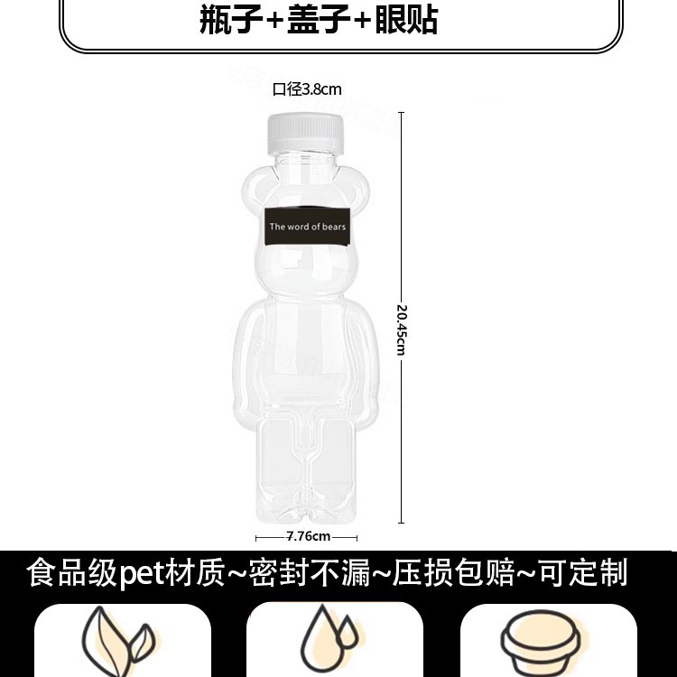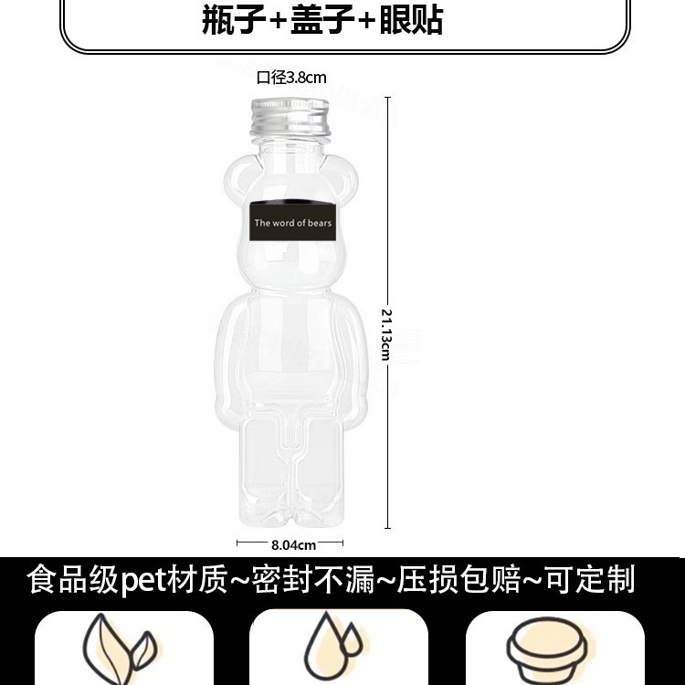 지우 폭력적인 곰 우유 차 컵 일회용 곰 음료 병 상업 뚜껑 만화 플라스틱 과일 오렌지 주스 마구간스토어 가기