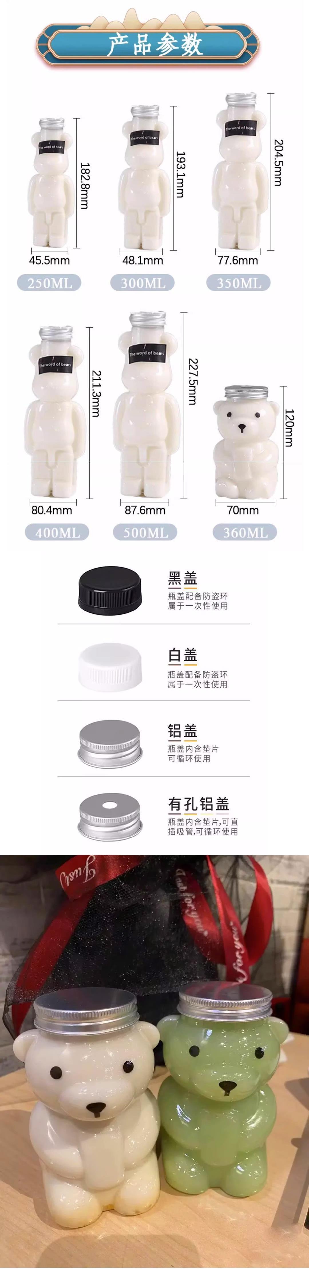 • 350ml 두꺼운 폭력적인 곰 알루미늄 캡 + 안대 10세트