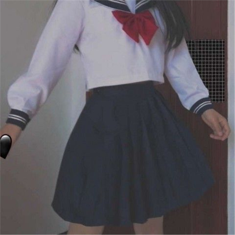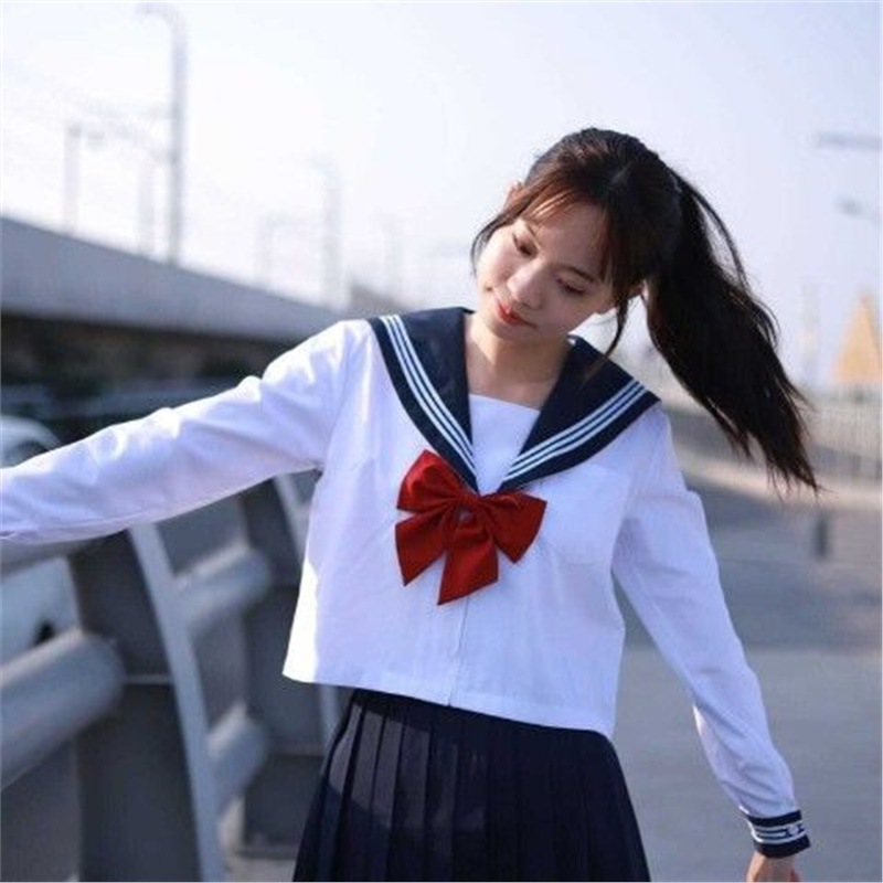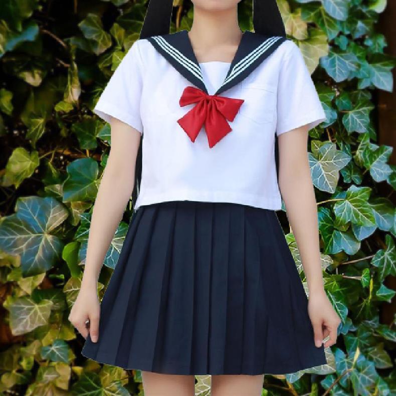 기본 jk 유니폼 정품 여학생 선원 유니폼 봄과 여름 학업 스타일 세트 교복 흰색 세 정통스토어 가기