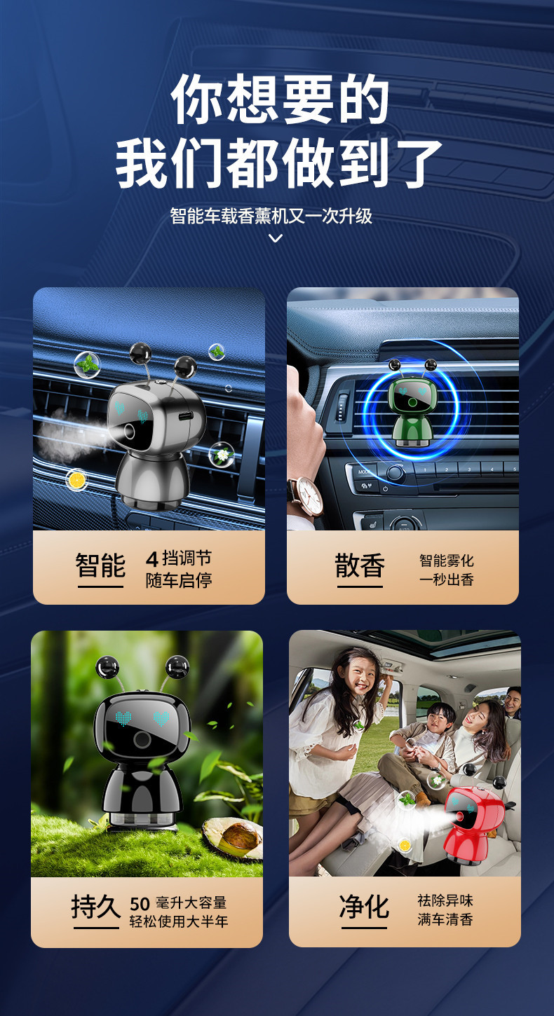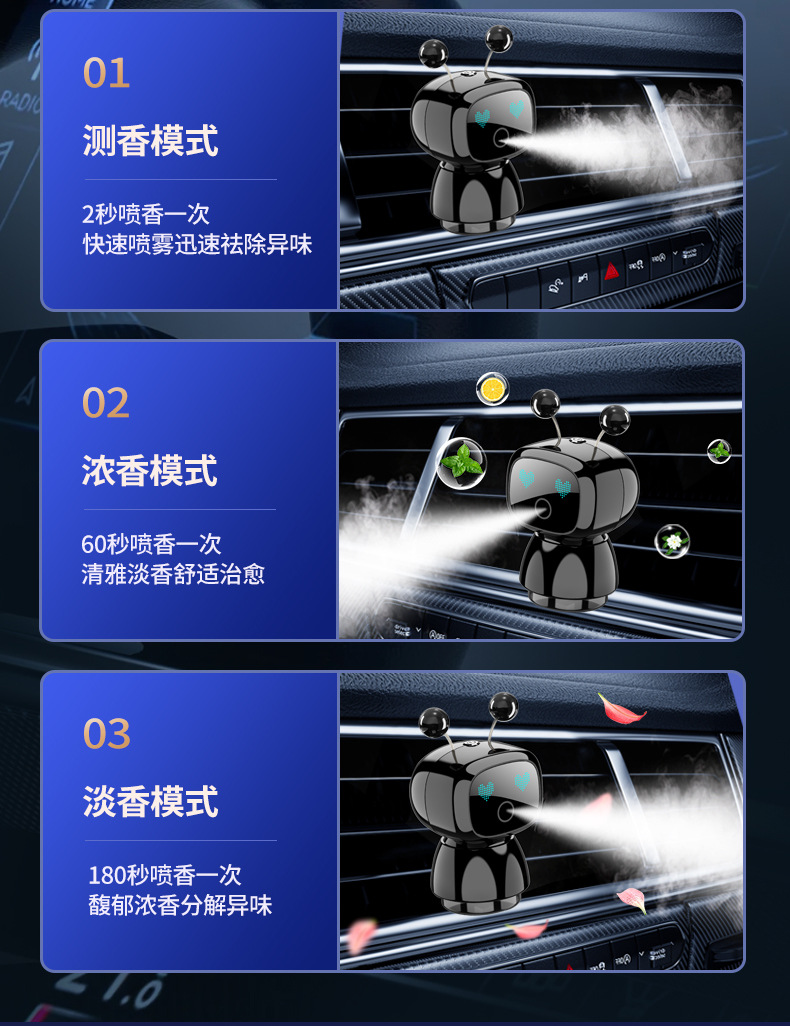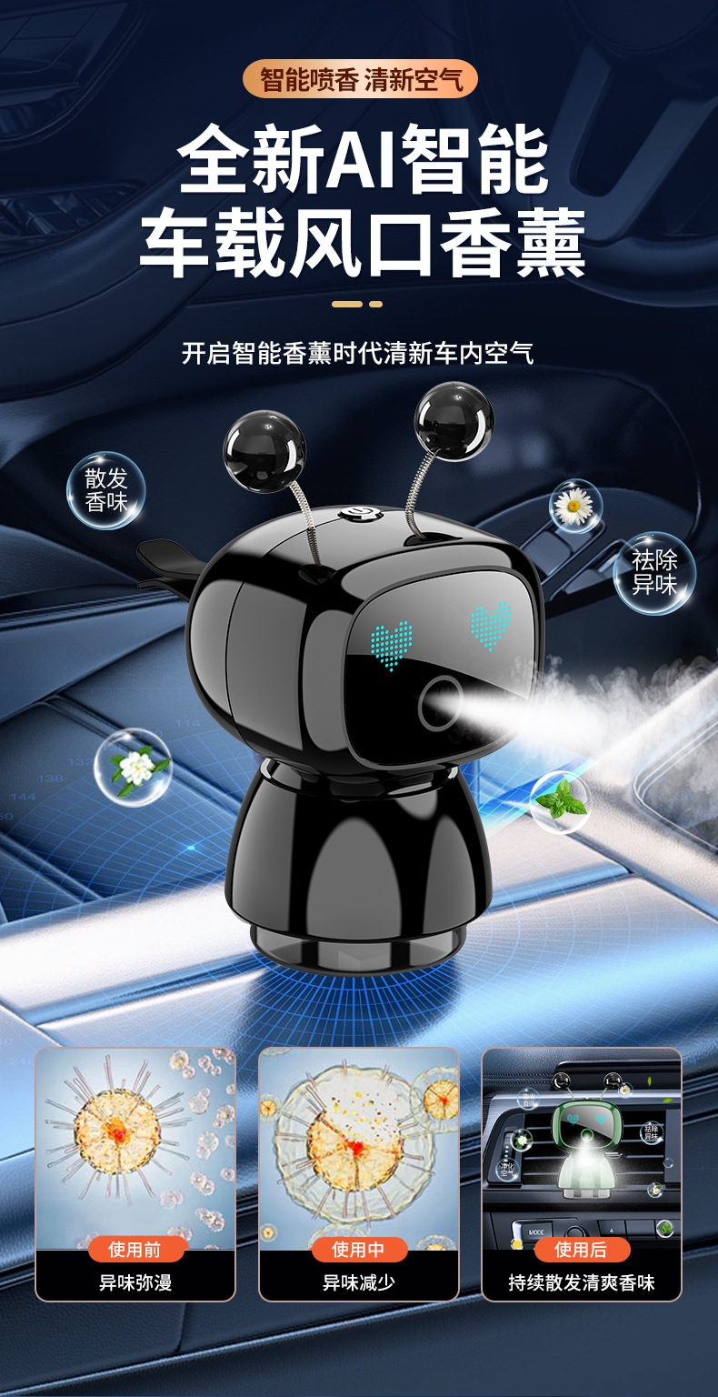 로봇 지능형 아로마 테라피 자동차 향수 에어컨 공기 콘센트 장식 향수 여성과 남성 자동차