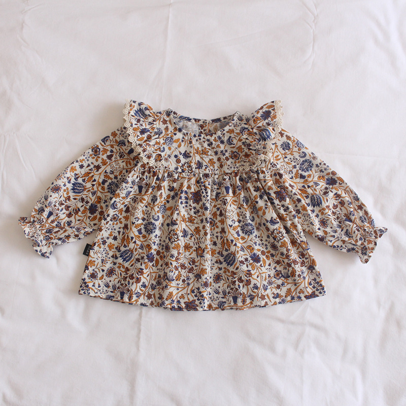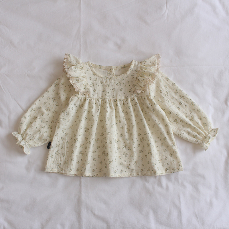 플라잉 슬리브 플로럴 셔츠 인형 셔츠 소녀 아기 소녀 아기 옷 봄과 가을 기질 6-12 개월 1-2-3 세