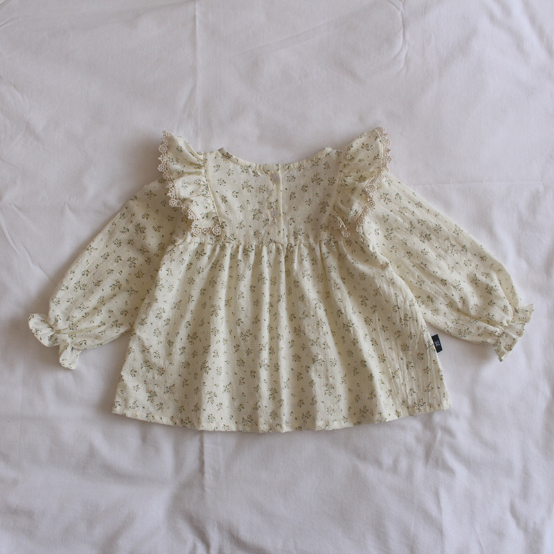 플라잉 슬리브 플로럴 셔츠 인형 셔츠 소녀 아기 소녀 아기 옷 봄과 가을 기질 6-12 개월 1-2-3 세스토어 가기