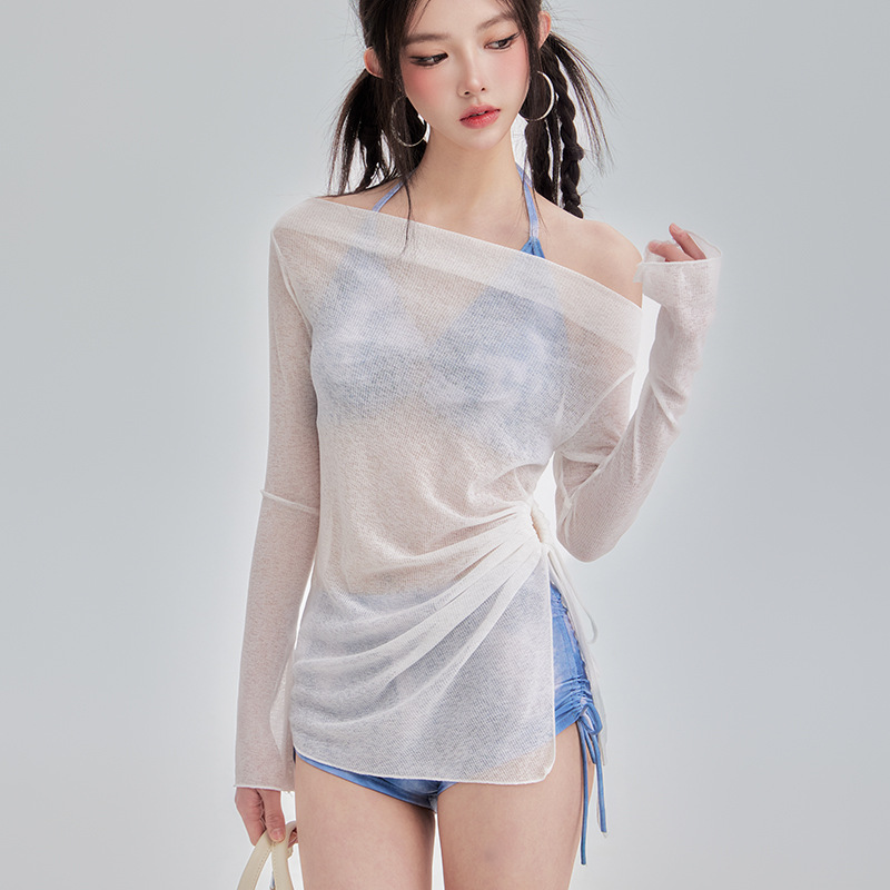 수영복 여성용 스플릿 블라우스 인쇄 및 염색 데님 3 피스 세트 벨리 커버링 보수적 인 휴일 온천 작은 가슴 순수한 욕망