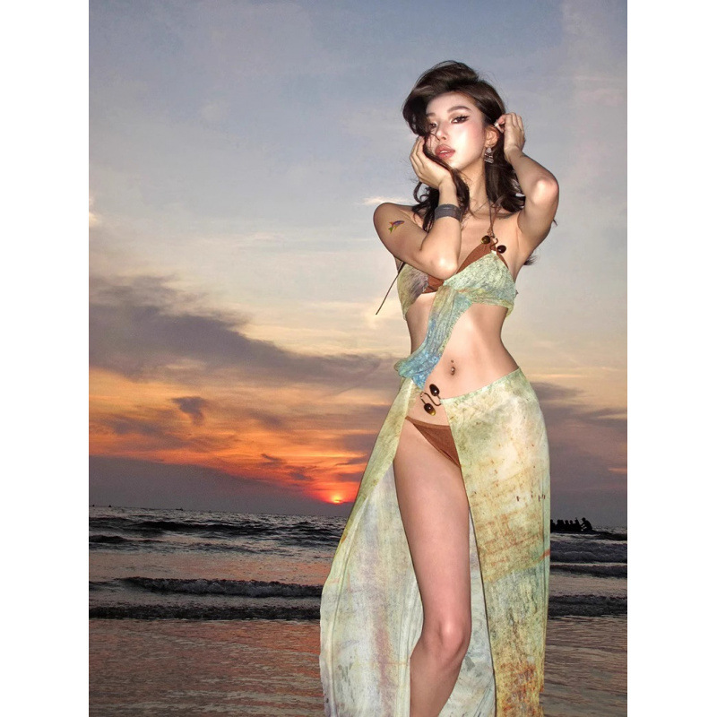 수영복 여성 온천 2025 데이트 섬 딥 V 레트로 슬림 적합 성인 비키니 섹시한 순수한 아름다운