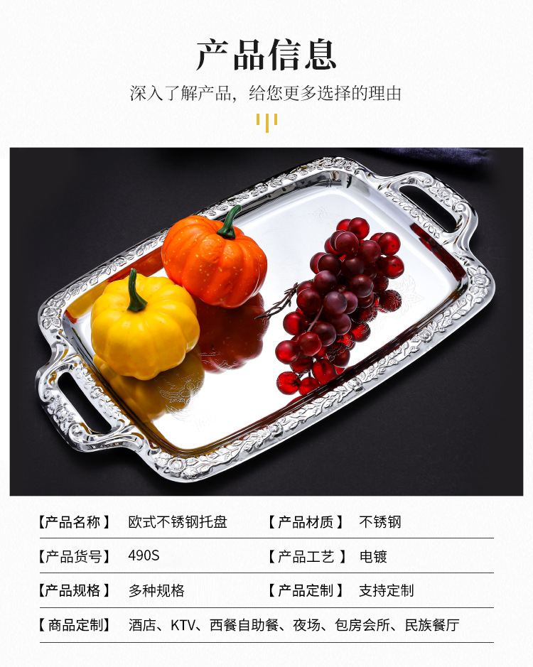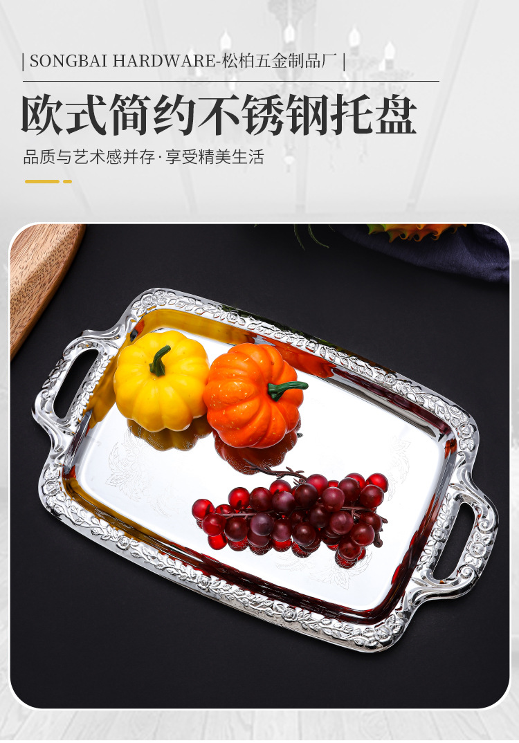 유럽 스타일 간단한 스테인레스 스틸 트레이 실버 가장자리 데스크탑 스낵 과일 플레이트 직사각형 식품 저장 플레이트 재고스토어 가기