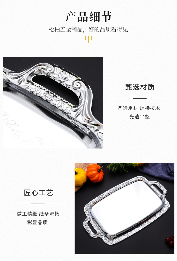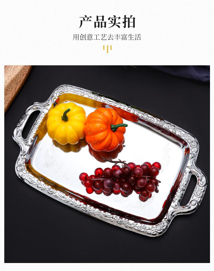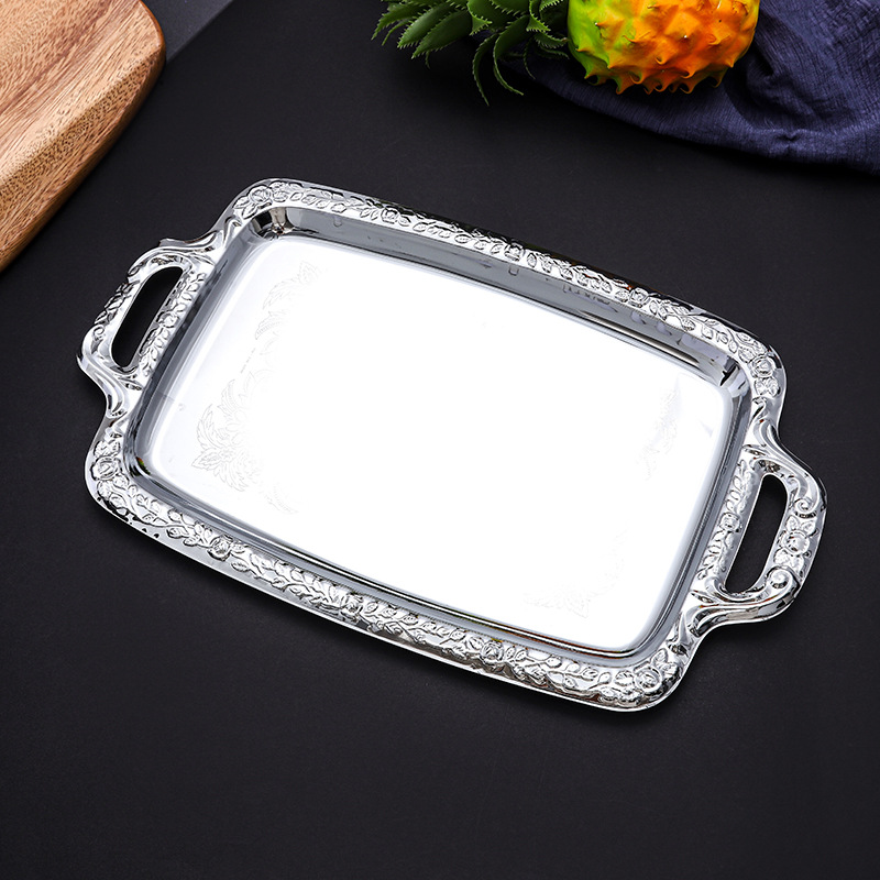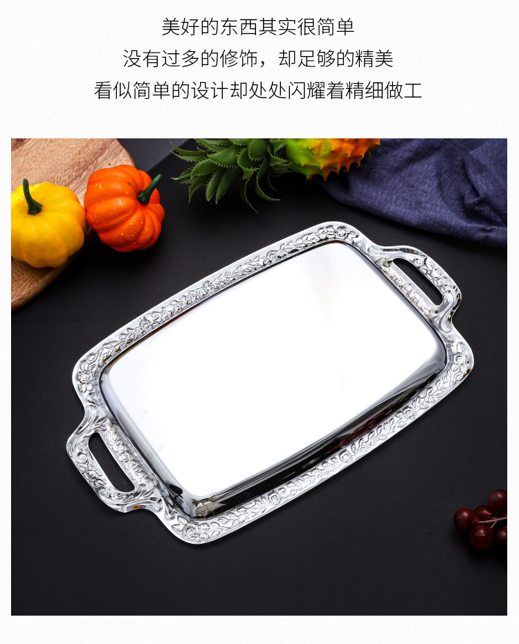 유럽 스타일 간단한 스테인레스 스틸 트레이 실버 가장자리 데스크탑 스낵 과일 플레이트 직사각형 식품 저장 플레이트 재고