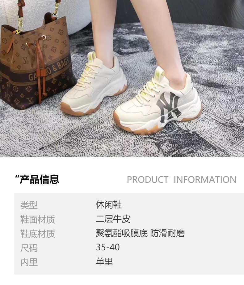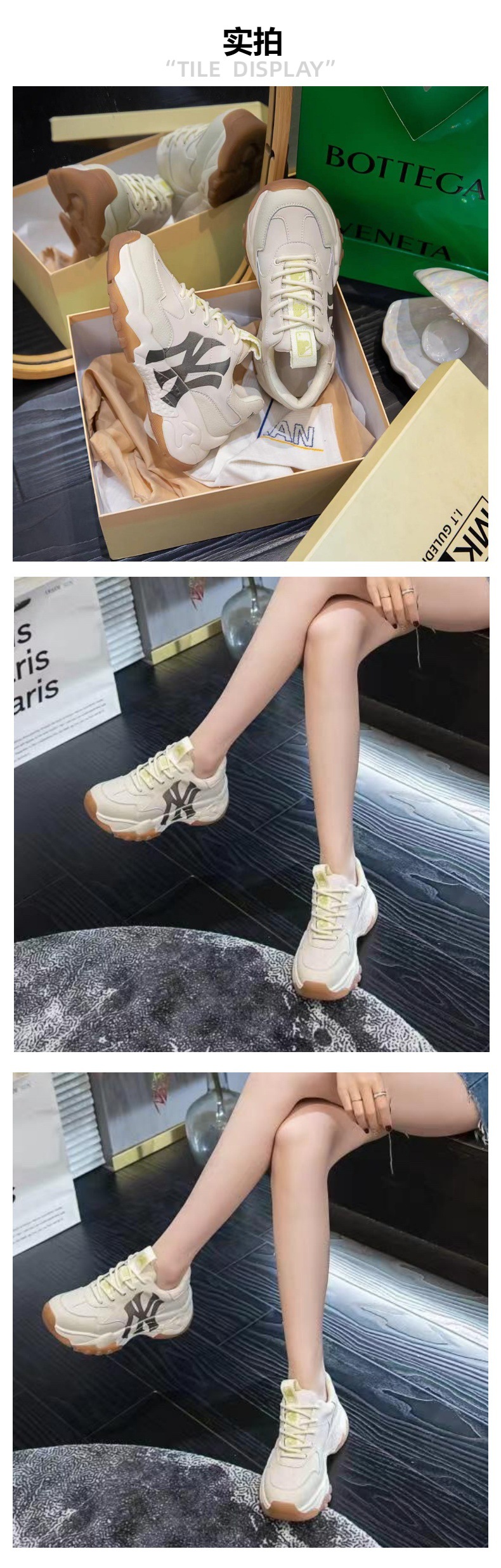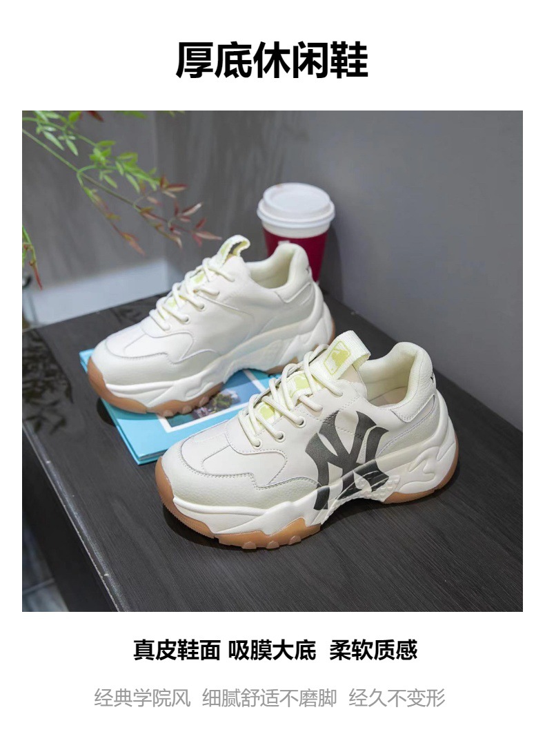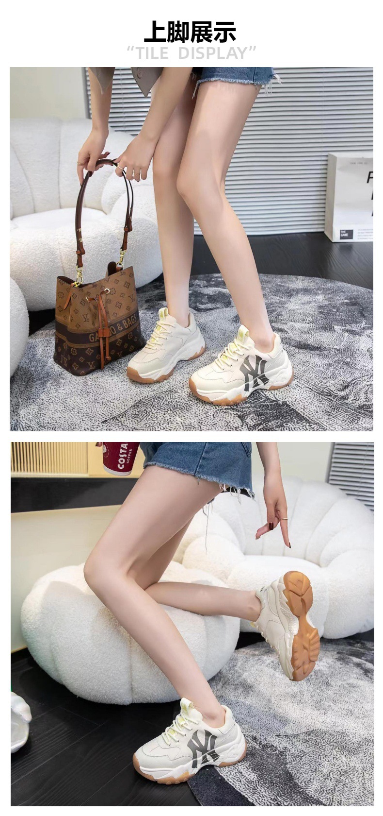 두꺼운 밑창 운동화 여성 신발 가죽 캐주얼 신발 2025 봄 새로운 올 매치 양키스 하이 보드 NY 아빠 신발스토어 가기