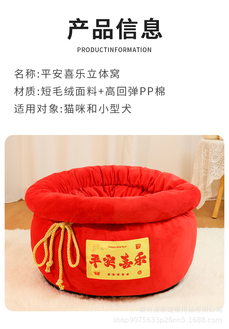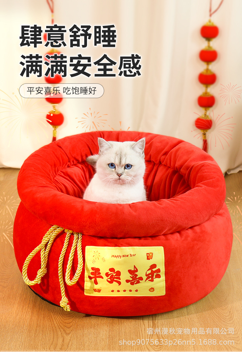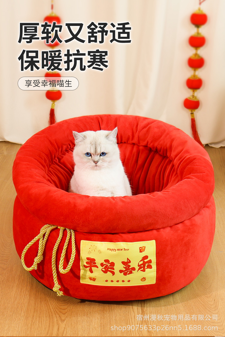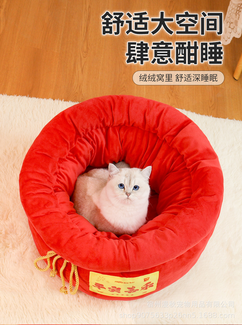 새해 고양이 집, 보물통 고양이 빌라, 개집, 두꺼운 고양이 집, 사계절 사용 가능, 따뜻한 금뱀 새해맞이