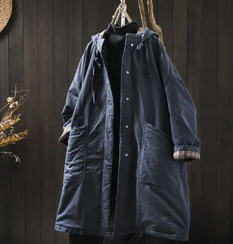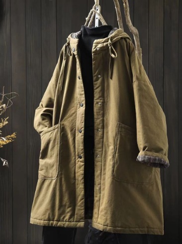가을과 겨울 새로운 대형 포켓 후드 중간 길이의 코튼 패딩 재킷 여성용 루즈 플러스 사이즈 레트로 캐주얼 두꺼운 코튼 패딩 81510스토어 가기