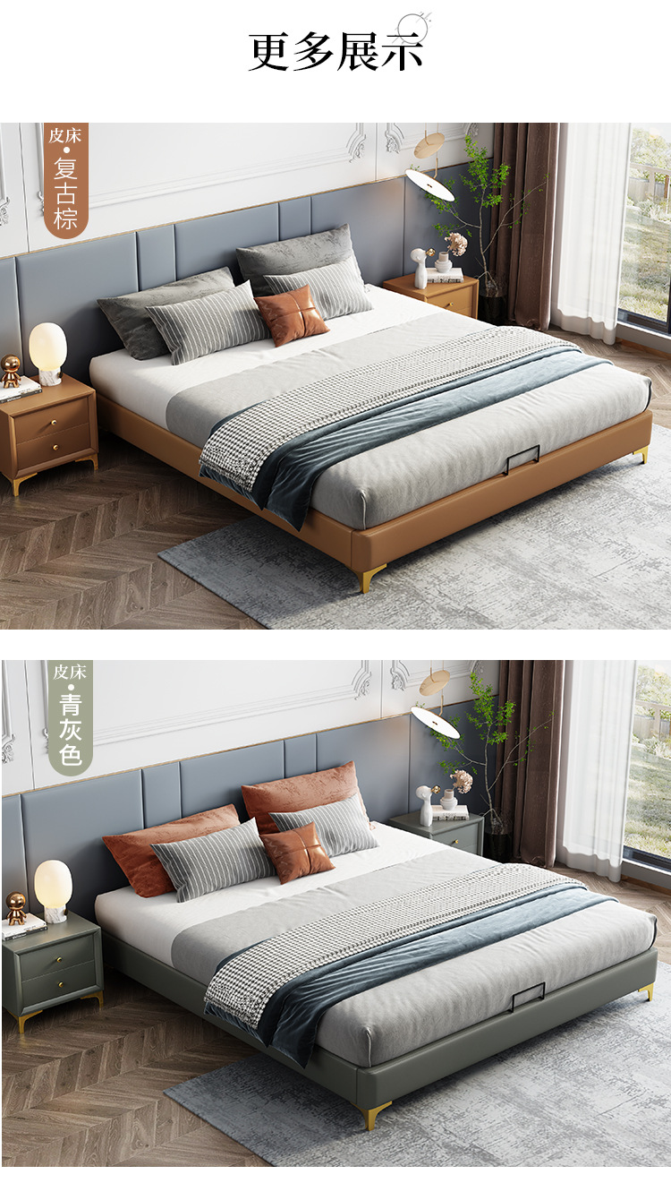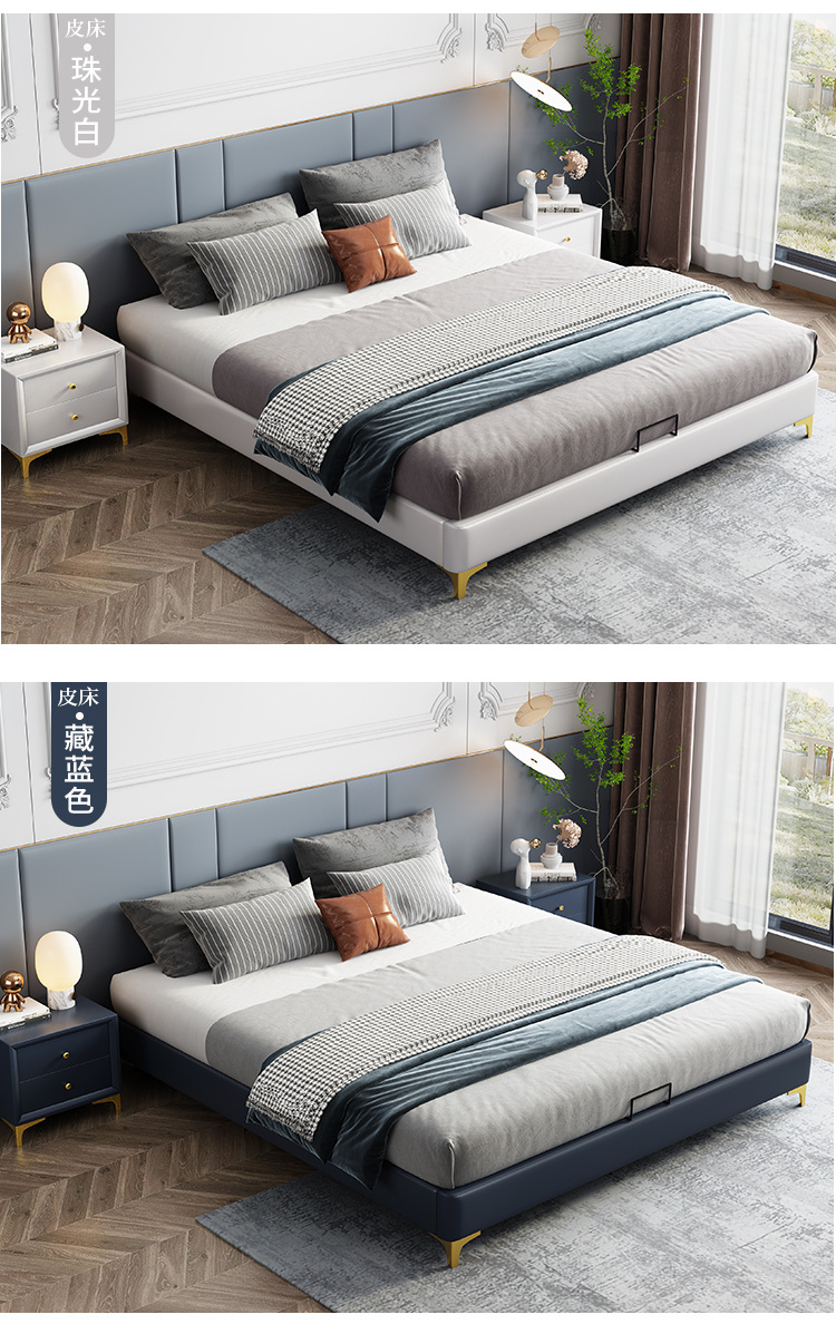현대 간단한 비 침대 조용한 가죽 아트 침대 작은 아파트 단단한 나무 침대 다다미 침대 세탁 불가능한 기술 천 침대스토어 가기