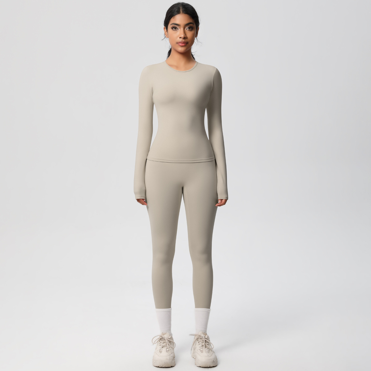• 7102 긴팔 상의 + 7100 긴바지 세트 - 카멜 브라운