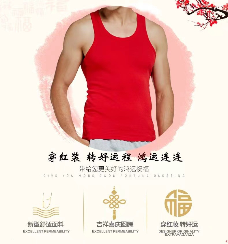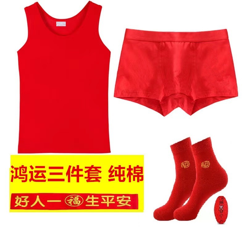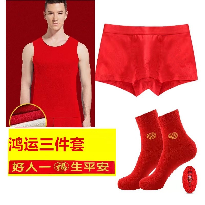 • 세트 [순면 레드 조끼 + 오픈 립 레드 속옷 + 레드 양말]