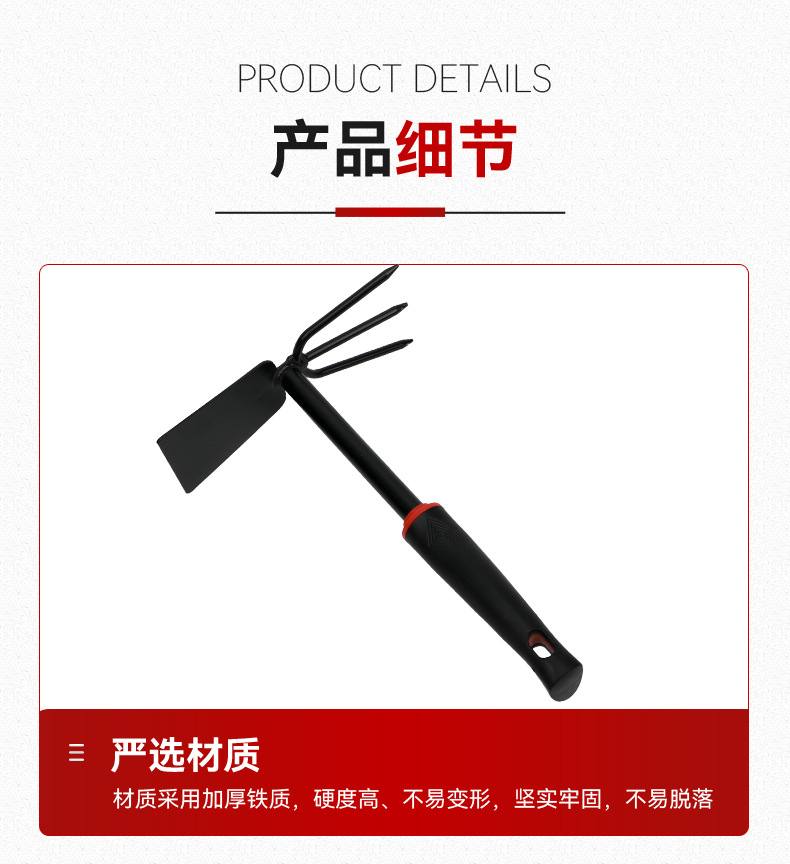 검은 고무 핸들 이중 목적 괭이 도매 스프레이 플라스틱 가정용 야외 플라스틱 핸들 두 개의 바쁜 심기 꽃과 야채 갈퀴로 바다 유물을 운전합니다.스토어 가기